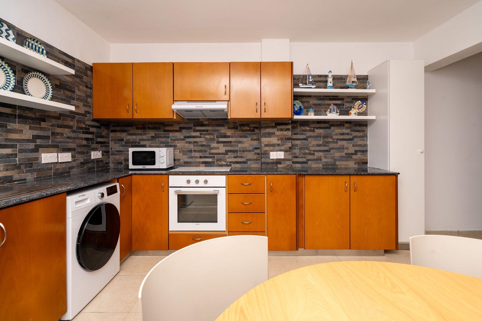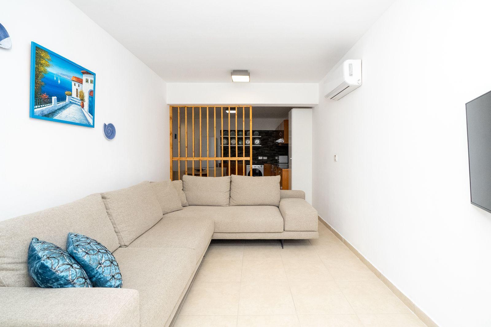 FULLY RENOVATED. FOR ONLY 6 MONTHS CONTRACT. WIFI INCLUDED IN THE PRICE. A beautiful 1 bedroom corner apartment just 350 meters from Kapparis Avenue and 750 meters from the beach!! The apartment is very spacious with a part of the living room having folding doors, separating a part of it, creating a 2nd bedroom. A huge covered veranda complementing the property. The apartment has its own private parking.