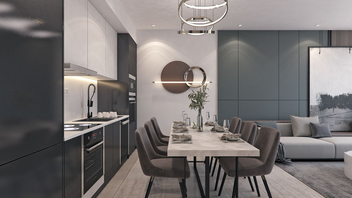 The new development comprises two modern blocks, A and B, featuring one, two, and three-bedroom apartments. Each block is equipped with a shared swimming pool, ensuring a high standard of living for all residents. The apartments are designed to offer comfort and convenience in an exceptional location.