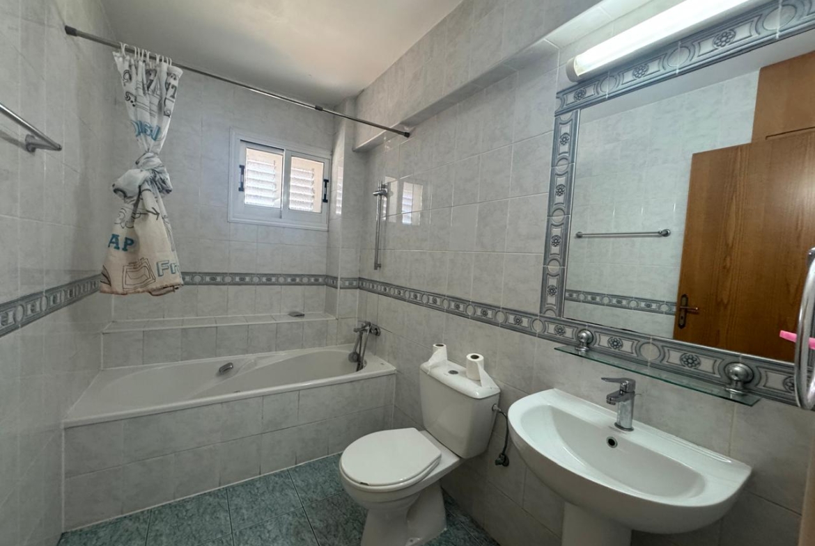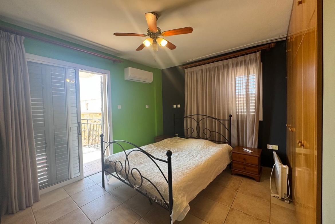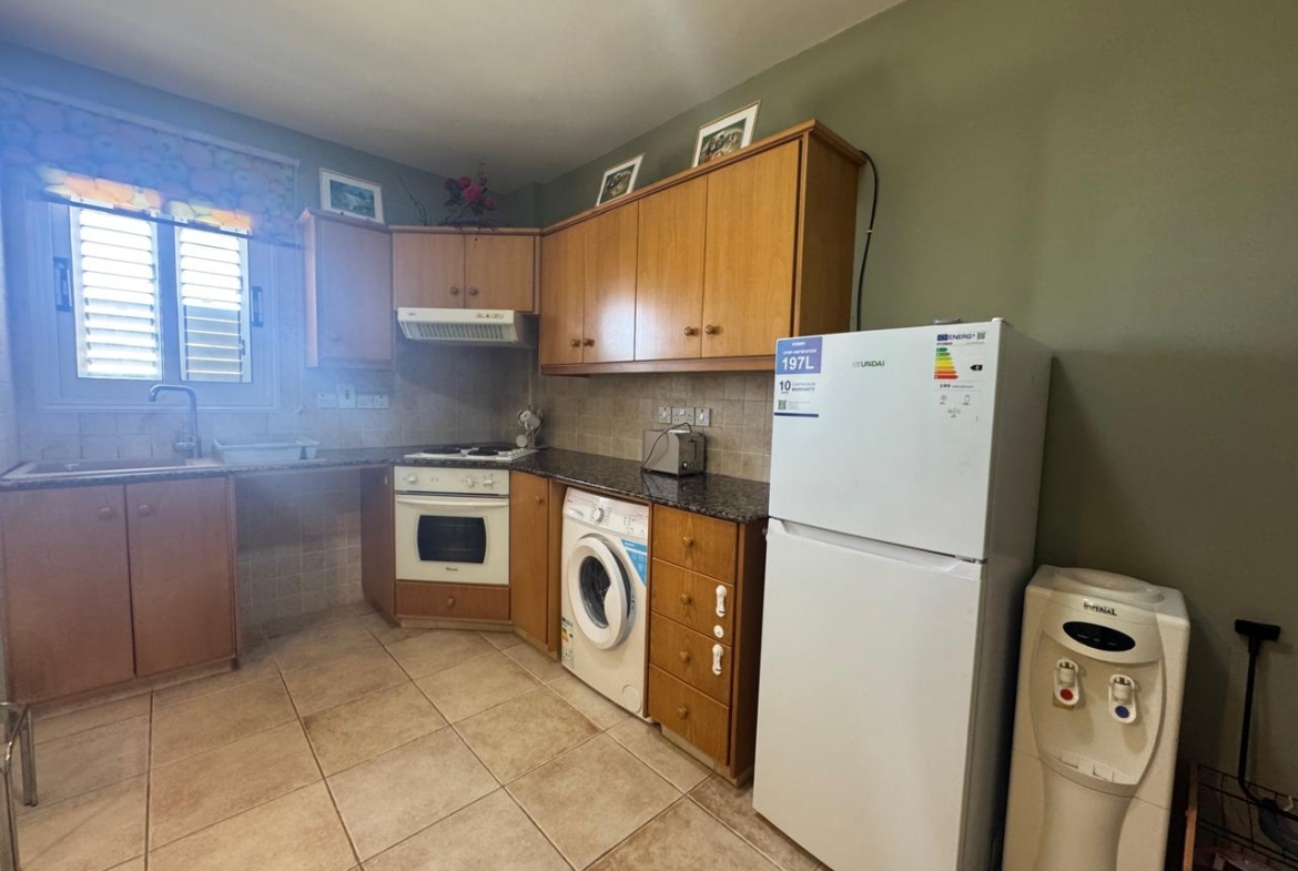 1 bedroom 1st-floor apartment for rent in a residential area of Derynia. Has 51 square meters covered area and 9 square meters covered veranda.