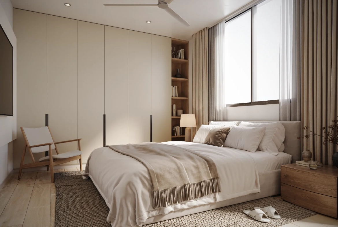 The Apartment: Step into a bright and spacious 50m² living area, ideal for modern living. The property boasts two comfortable bedrooms and a generous 9m² covered veranda – your private oasis for relaxing mornings and tranquil evenings. The added convenience of a dedicated covered parking space and a storage room eliminates everyday hassles. Easy access is guaranteed with a modern elevator serving all floors.
