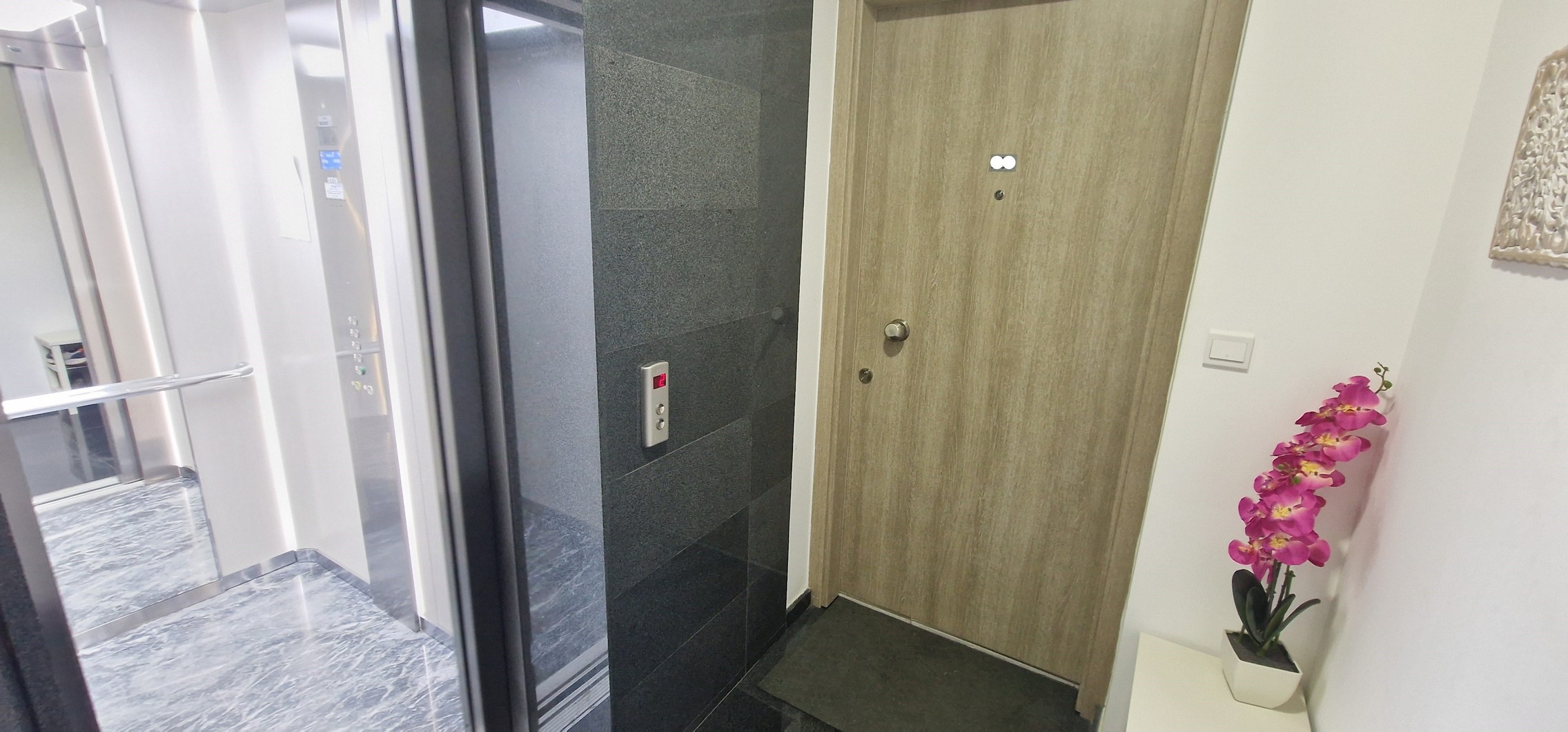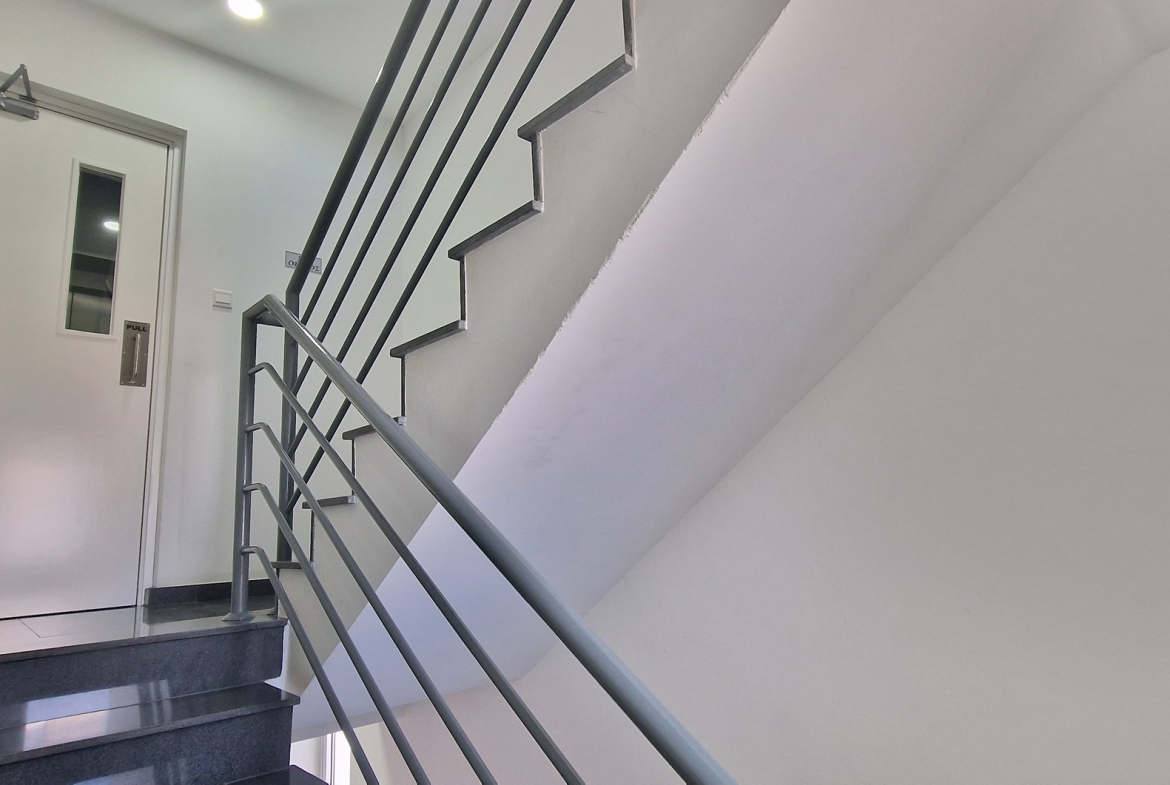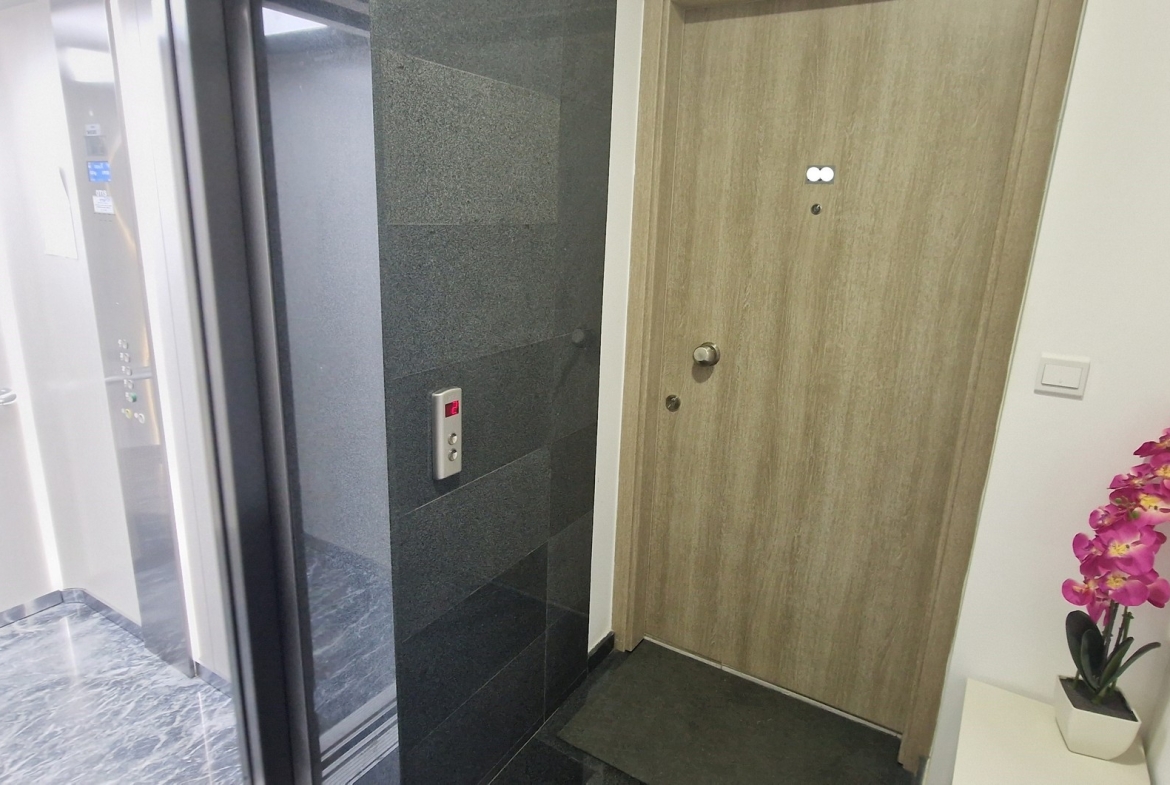 The building poses a security entrance and entrance video intercom. An elevator and staircase connect all floors.