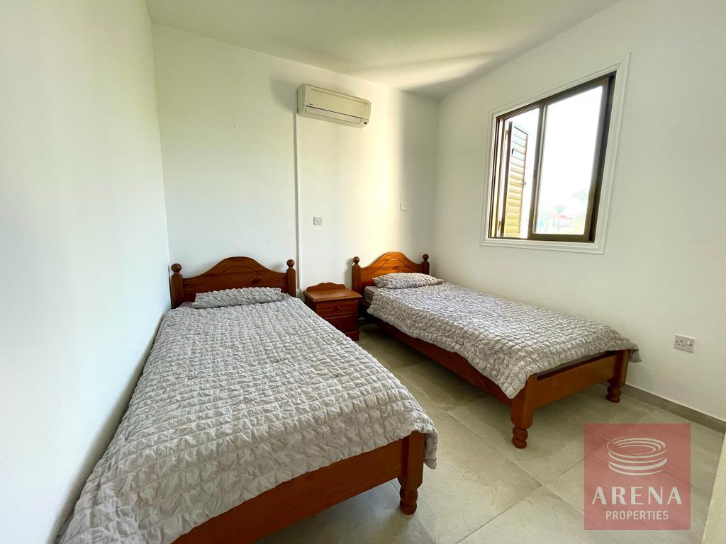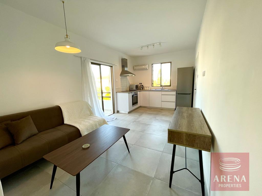 The apartment is located on the 1st floor and has open open-plan kitchen and living area, two bedrooms and a bathroom.