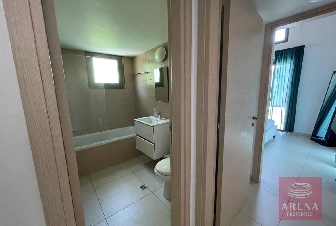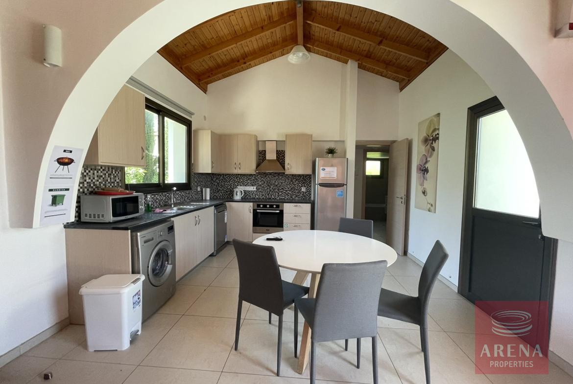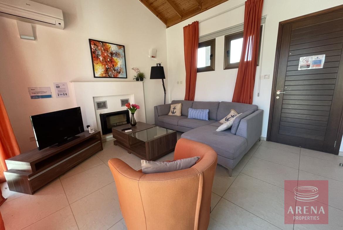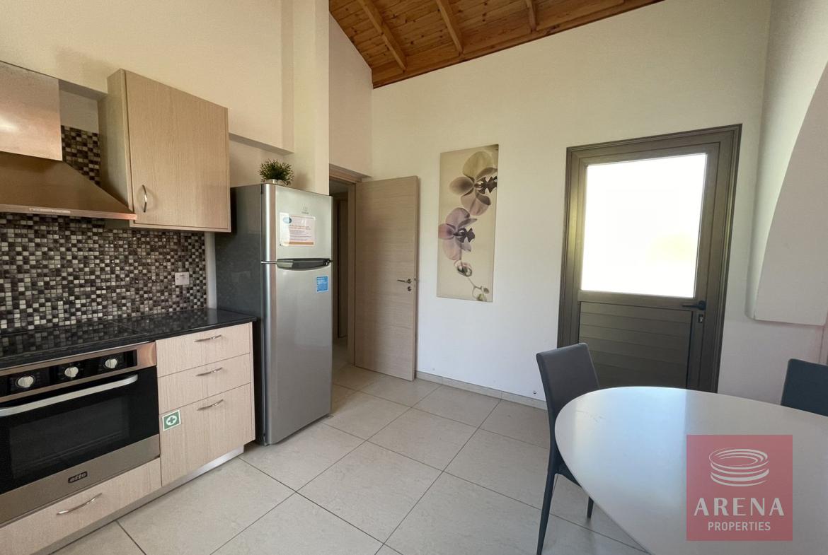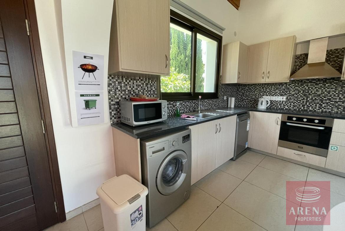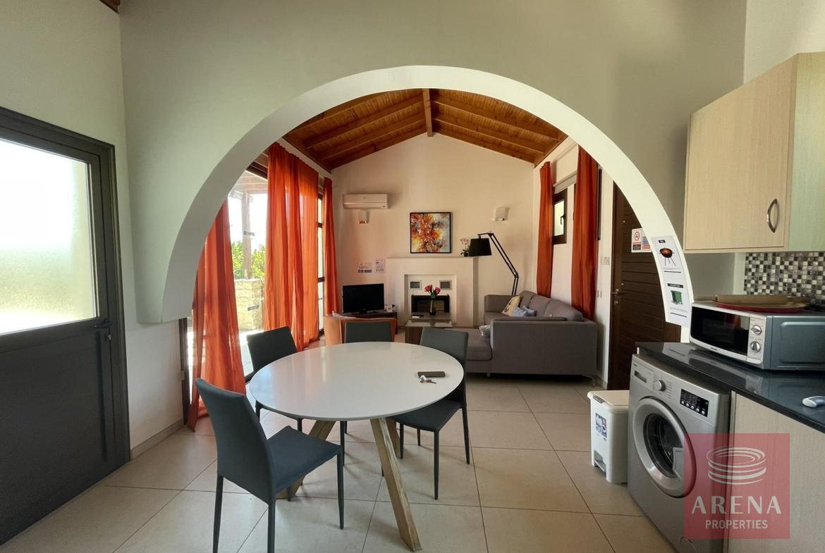 This villa features two bedrooms, one of which is a generously proportioned ensuite with its own bathroom, ensuring privacy and convenience. An additional bathroom caters to the needs of residents and guests.