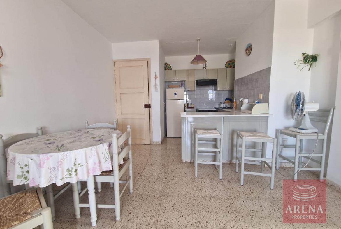 This apartment is in a prime location in the Kapparis Area, 750 metres from the beach, in a quiet area. This beautifully presented apartment comprises an open-plan kitchen and lounge area, two bedrooms with fitted wardrobes, and a family bathroom.