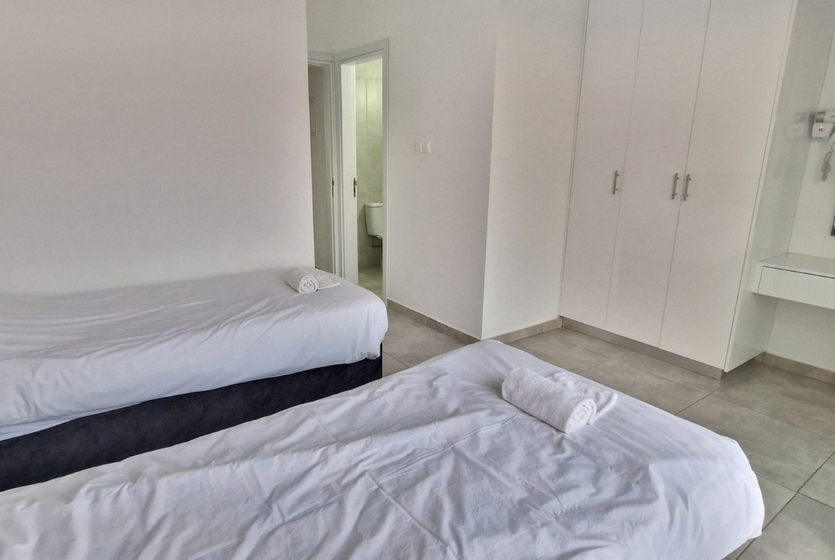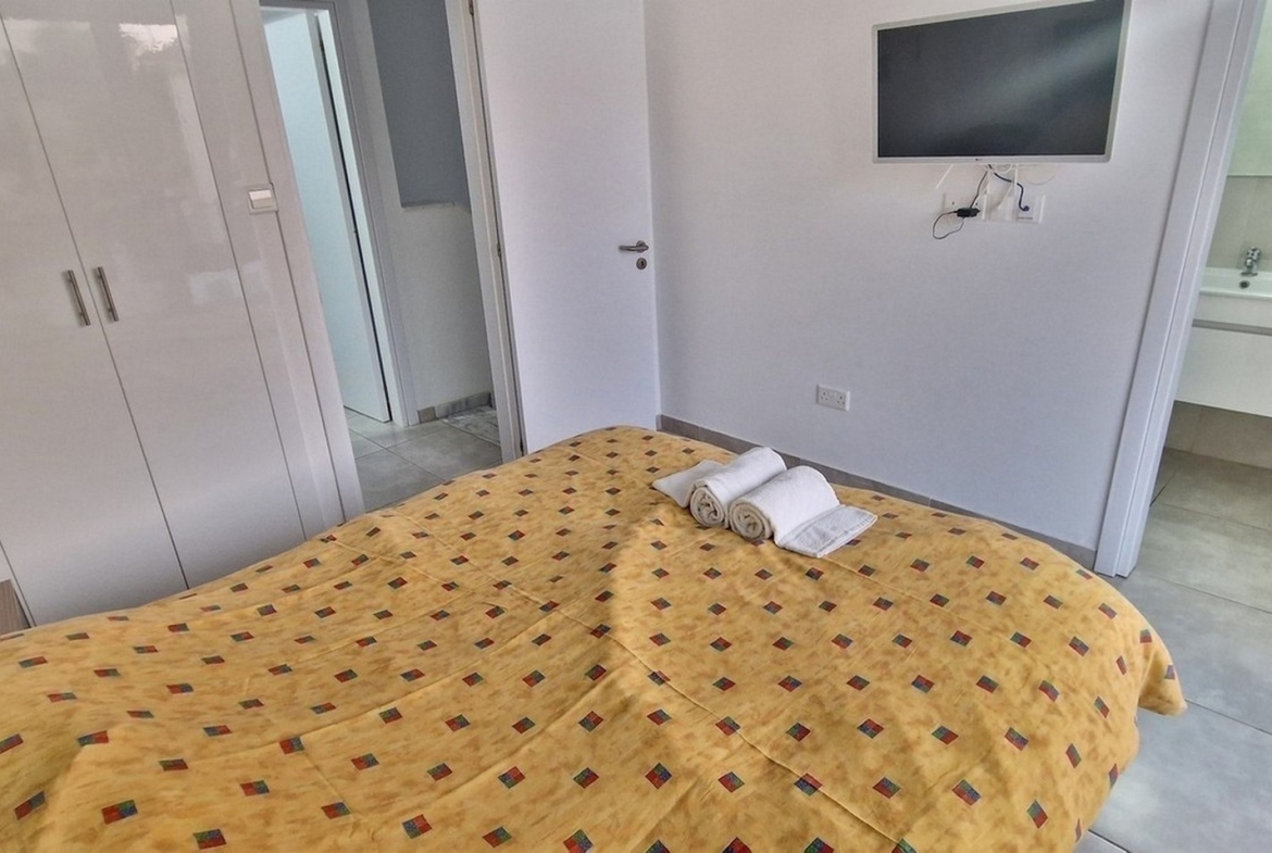 Information: Bedrooms: 2 Bathrooms: 2.5 Indoor Areas: 88 sq.m. Covered Verandas: 30 sq.m. Uncovered Verandas: 20 sq.m. Total Covered Area: 118 sq.m. Total Built Area: 138 sq.m. Land Area: 115 sq.m. Pool Size: 4.50 x 16.00 Year Built: 2024 Energy Efficiency Rating: A Sea Side Walking Distance to the Beach Walking Distance to Amenities Corner Property Modern Design Thermal Insulation Fully Air Conditioned (Split System) Private Parking (uncovered) Communal Swimming Pool Communal Children’s Pool Communal Garden/Children’s Play Area Wheelchair Access to the Pool Access to the Pool from the Back Veranda Patio Yard with Synthetic Grass Open Plan Living, Dining and Kitchen Area Downstairs Guest WC Both Bedrooms with En-Suite Verandas Balconies Outdoor Sitting Area Double Glazing Downstairs Front and Back Shutters Marble Staircase Quality Ceramic Flooring Built-In Wardrobes Built-In Kitchen Granite Kitchen Counters Solar Water Heating System Electric Water Heating System Water Pressurizing System Outdoor Showers Quiet Neighbourhood Short Drive to the Paralimni Shopping Areas Easy Access to Main Roads Easy Access to Highway High Rental Potential Communal Fees: €60 per month