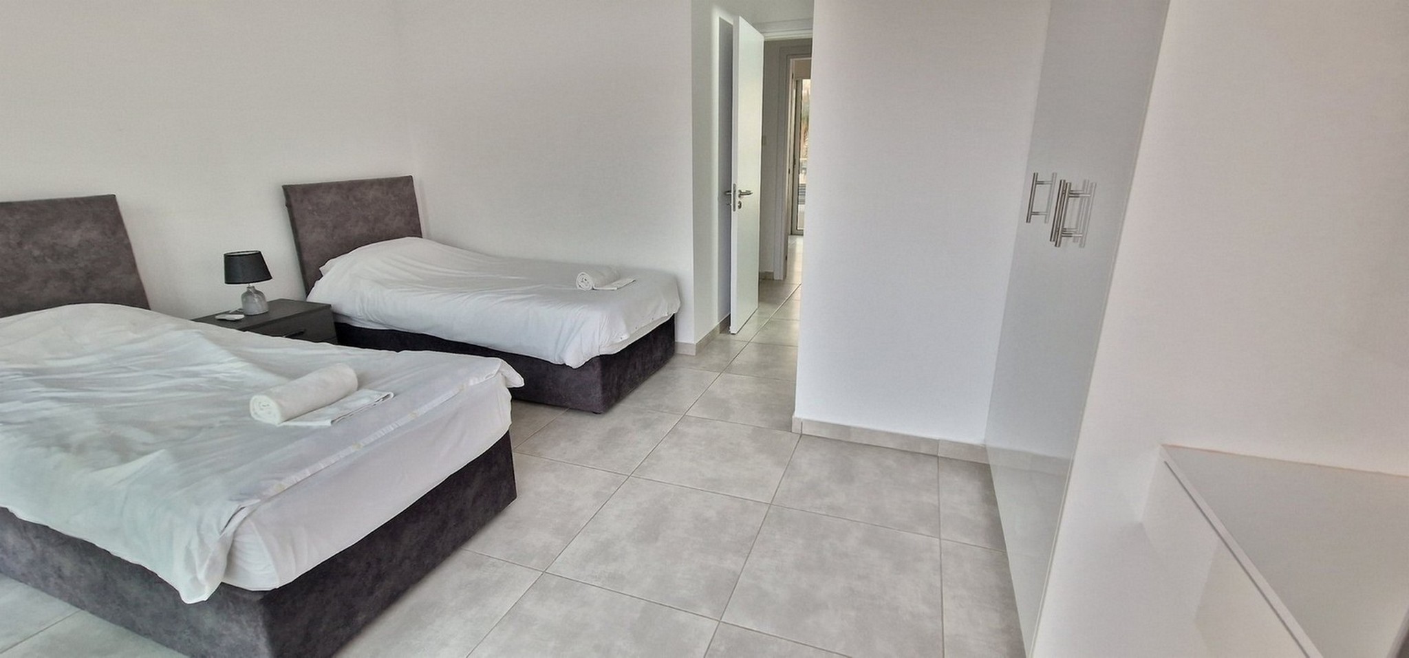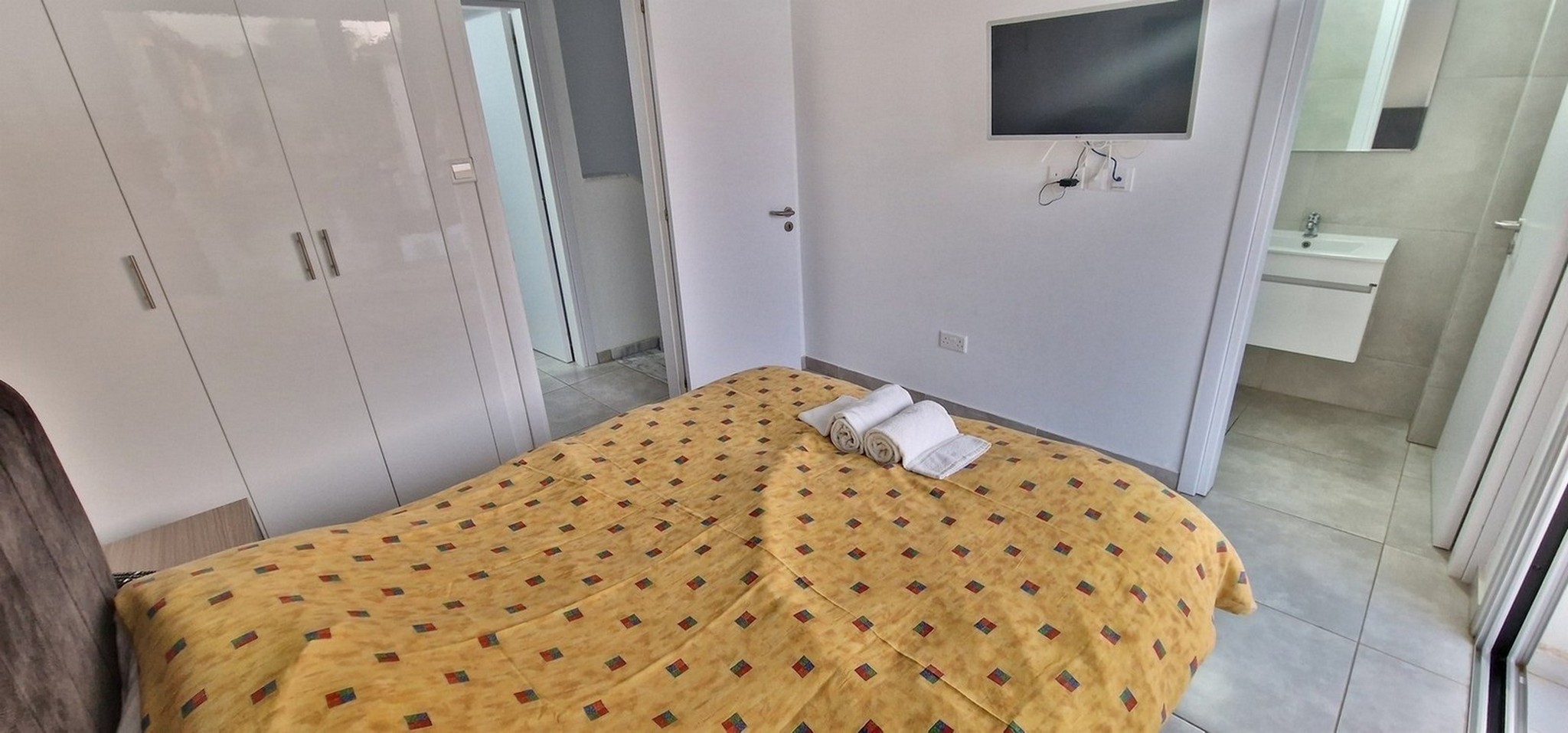 It is situated just a few minutes’ walk from the many amenities and services located in Kapparis, where one can find anything from supermarkets, cafes, pubs, and restaurants and just 3 minutes’ driving time from the shopping areas of Paralimni. At the same time, it is a short 10-minute drive to the beaches of Protaras and 15 minutes from Ayia Napa.
