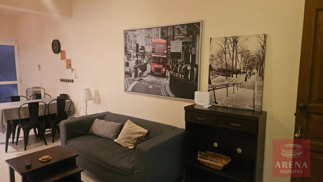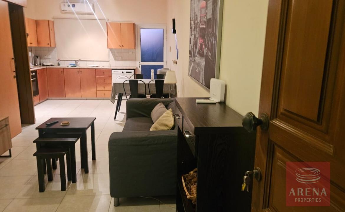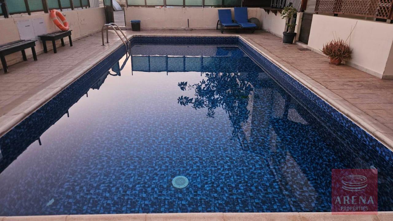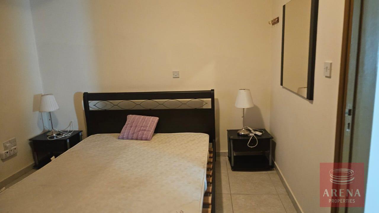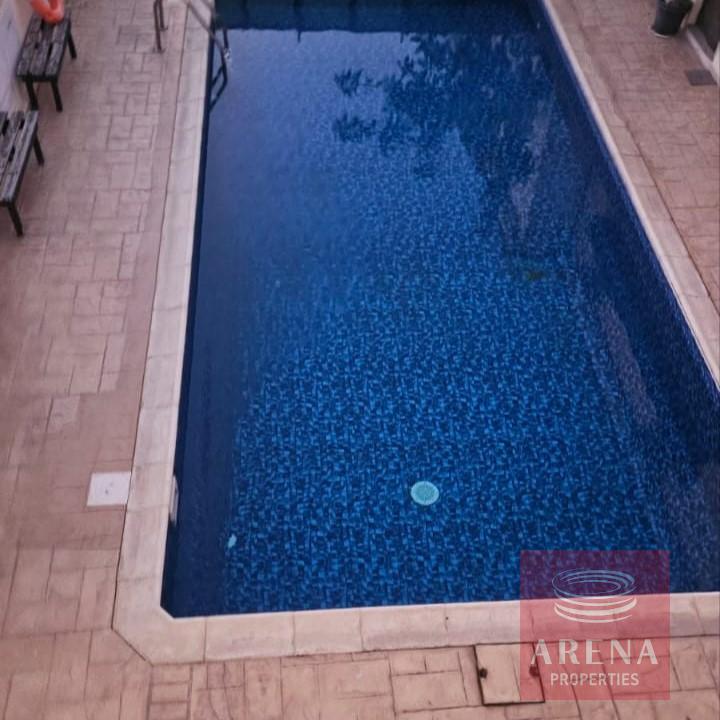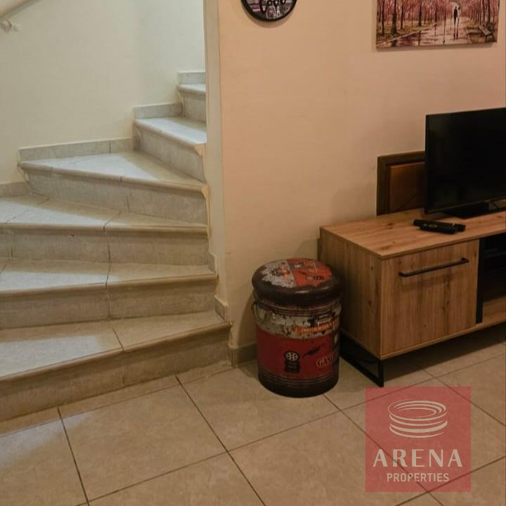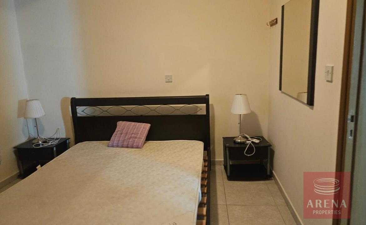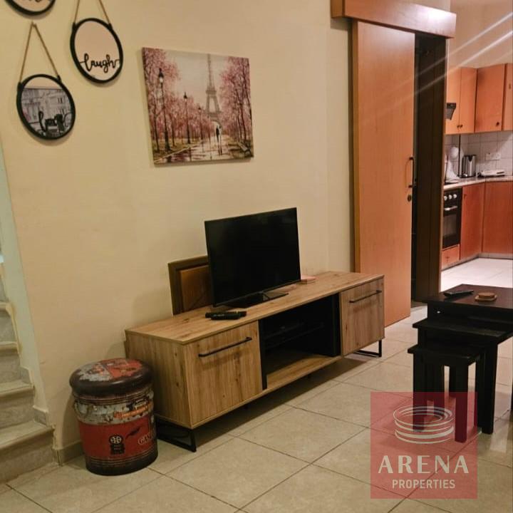 A two-bedroom, fully-furnished townhouse for long-term rent in Pervolia is in the complex with a communal swimming pool.