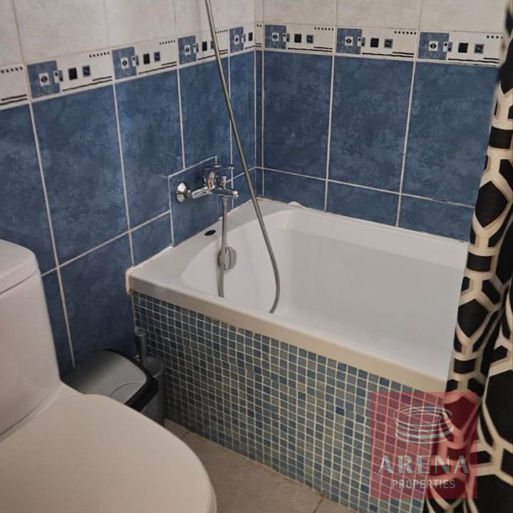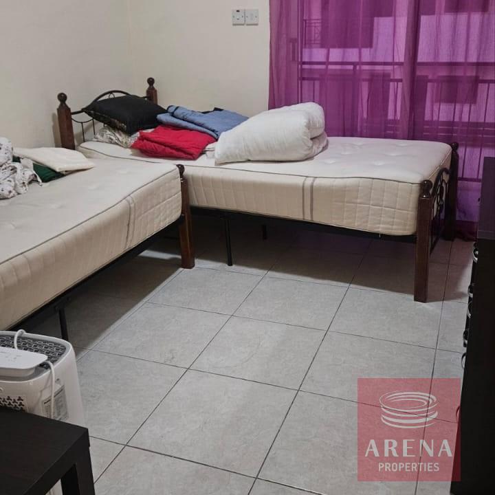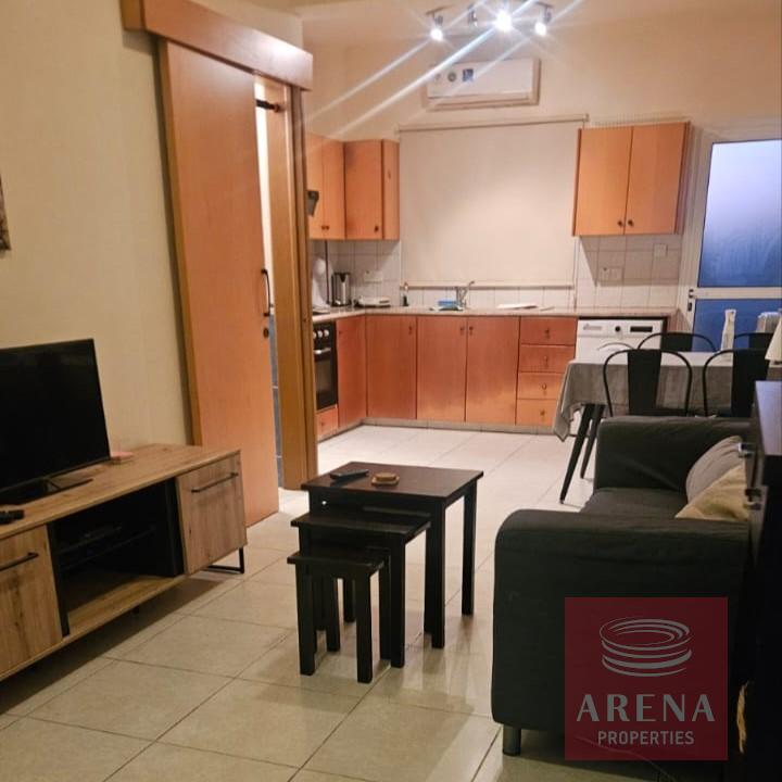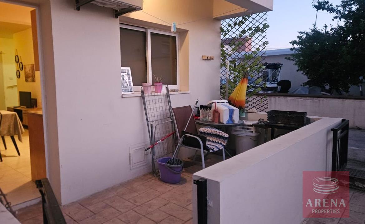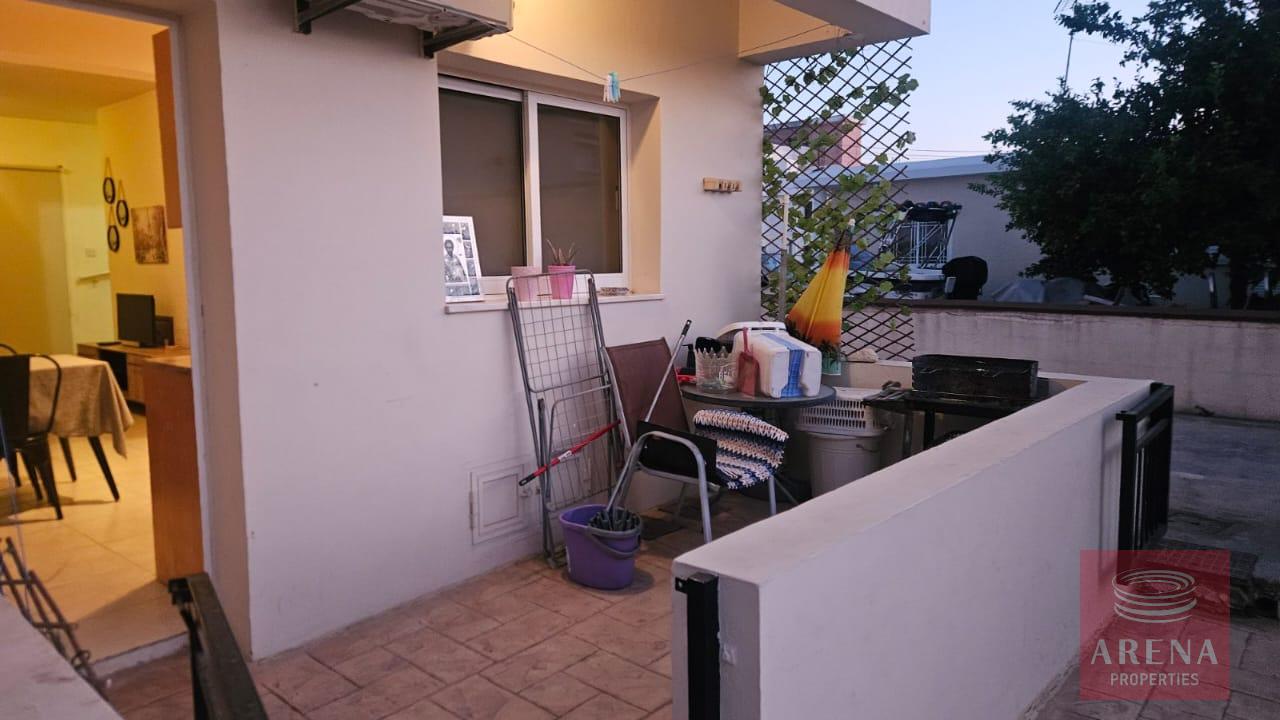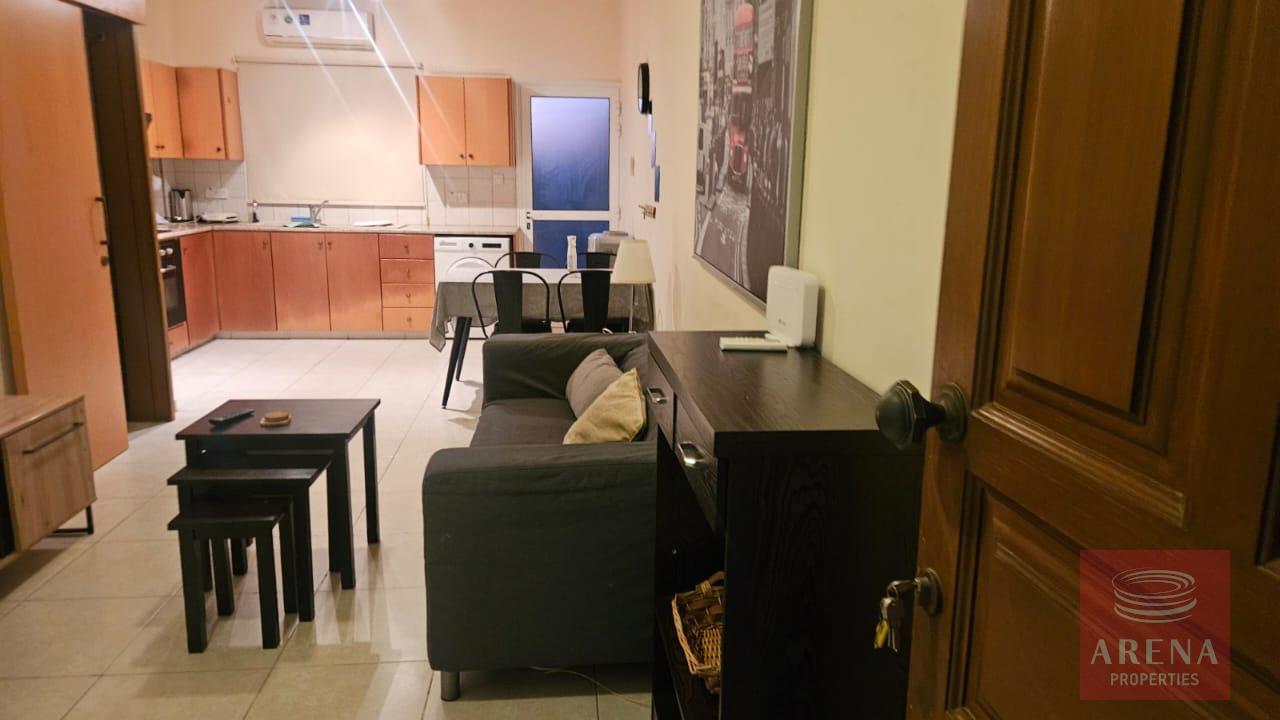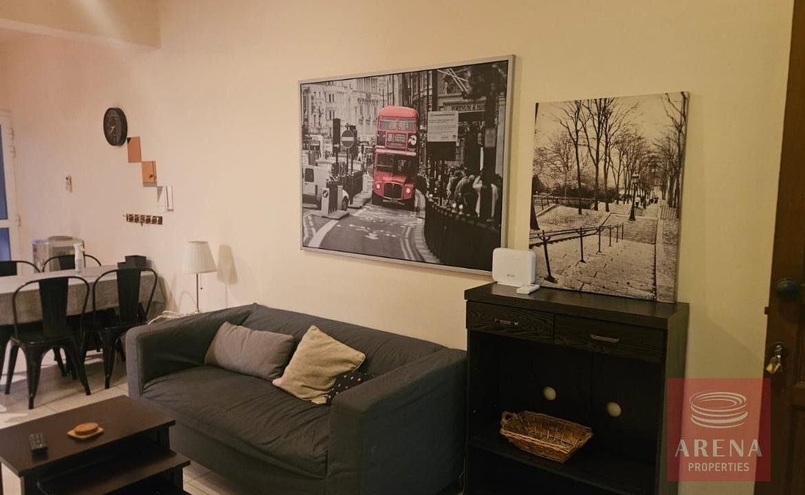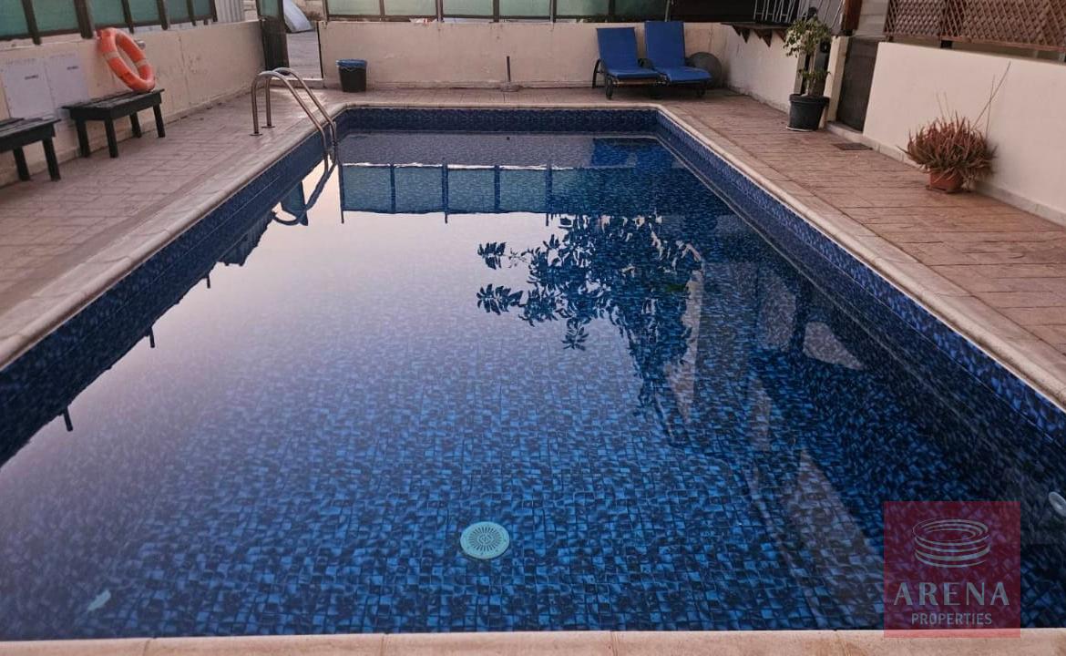 A two-bedroom, fully-furnished townhouse for long-term rent in Pervolia is in the complex with a communal swimming pool.