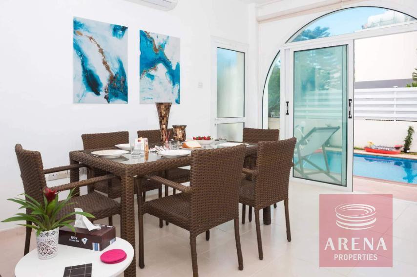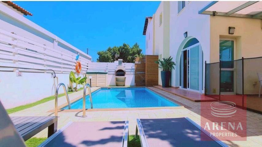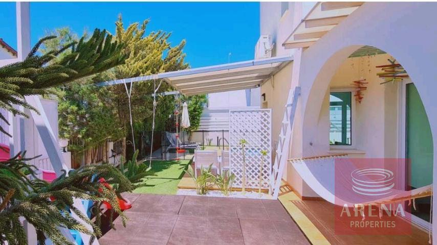 Experience the ultimate blend of comfort and luxury in this charming 2-bedroom villa available for long-term rent. Nestled on a 200m² plot with a spacious covered area of 87m², this fully furnished property offers a serene retreat just 1.5 km from the sea. Enjoy the convenience of a private pool, with maintenance included, perfect for leisurely afternoons. The villa is eco-friendly, boasting photovoltaic panels that nearly eliminate electricity bills. Located 65 km from the airport, this property combines tranquility and accessibility, making it the perfect home for those seeking a peaceful coastal lifestyle.
