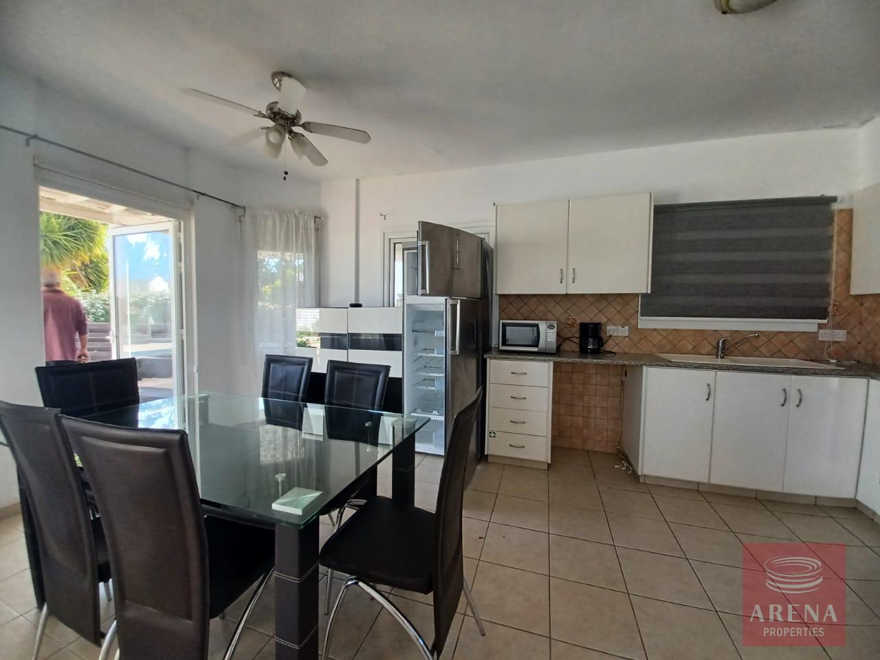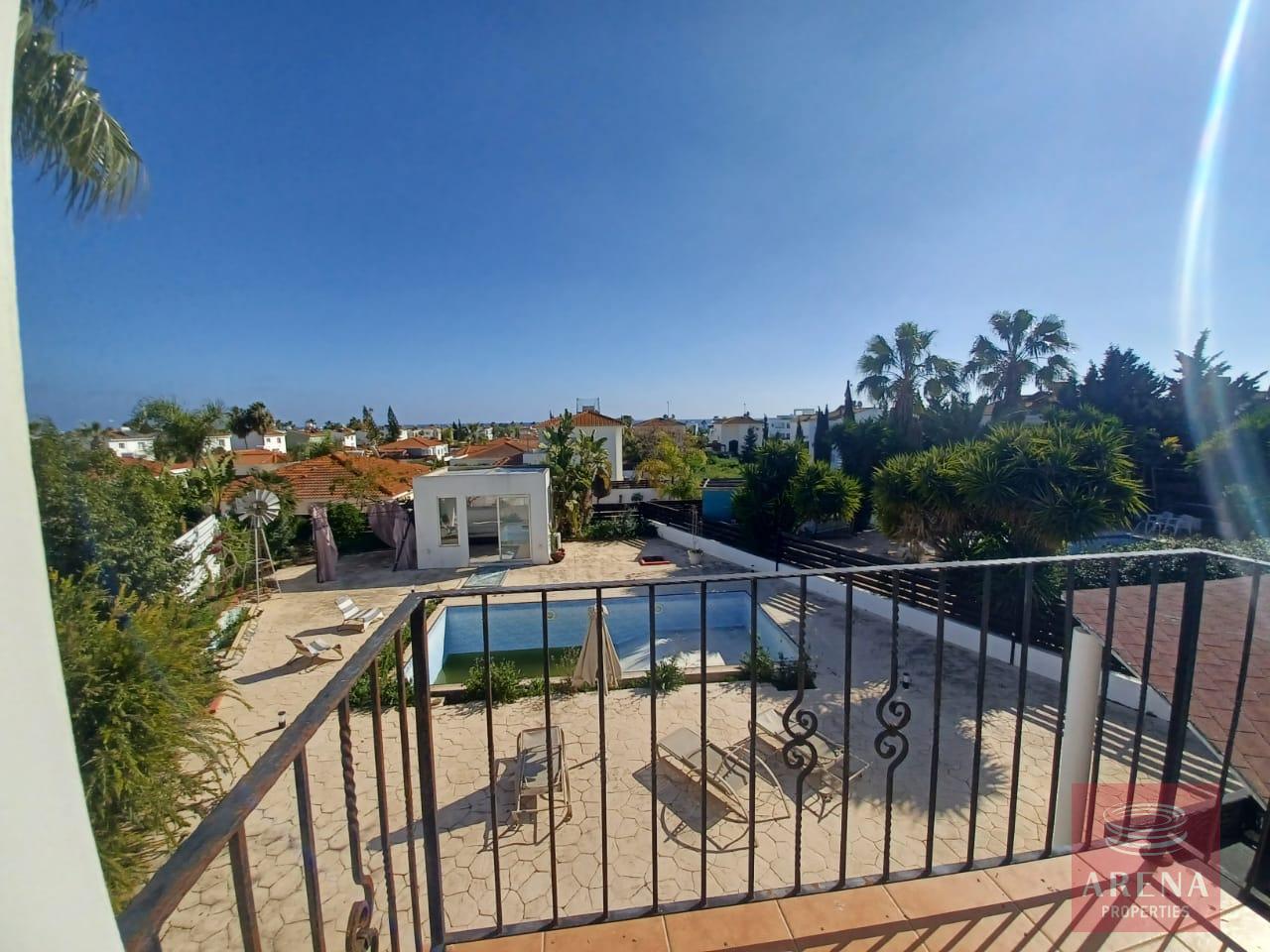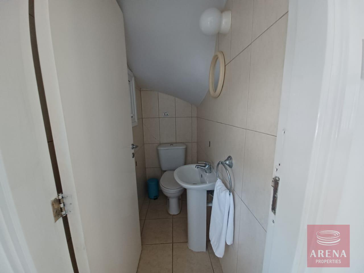 Open kitchen with sitting and dining room and WC on the ground floor. Upstairs there are 2 double size bedrooms. Lots of windows and lots of light and there is a breeze. Outside there is an extra studio bedroom The swimming pool is 8×4 with a beautiful mature garden and a windmill 2 covered parking spaces Fully furnished Fully A/C Fully electrical Appliances