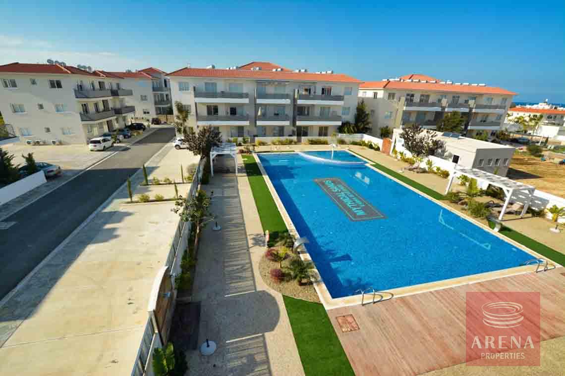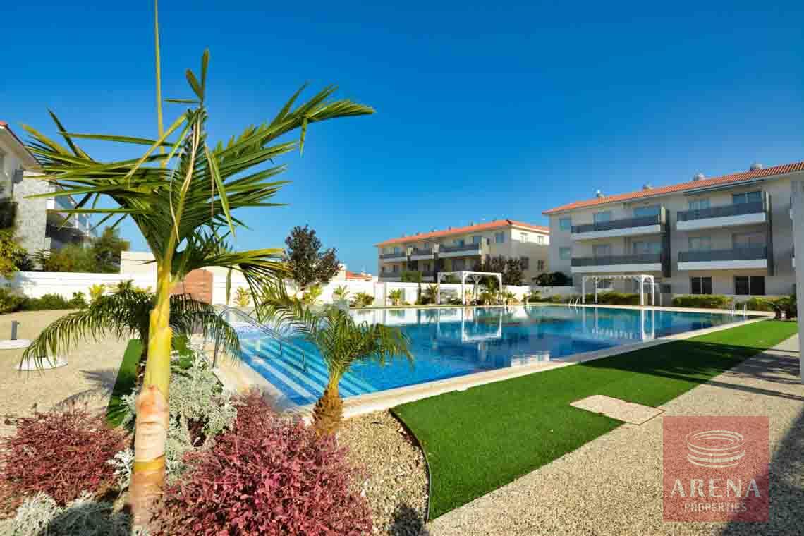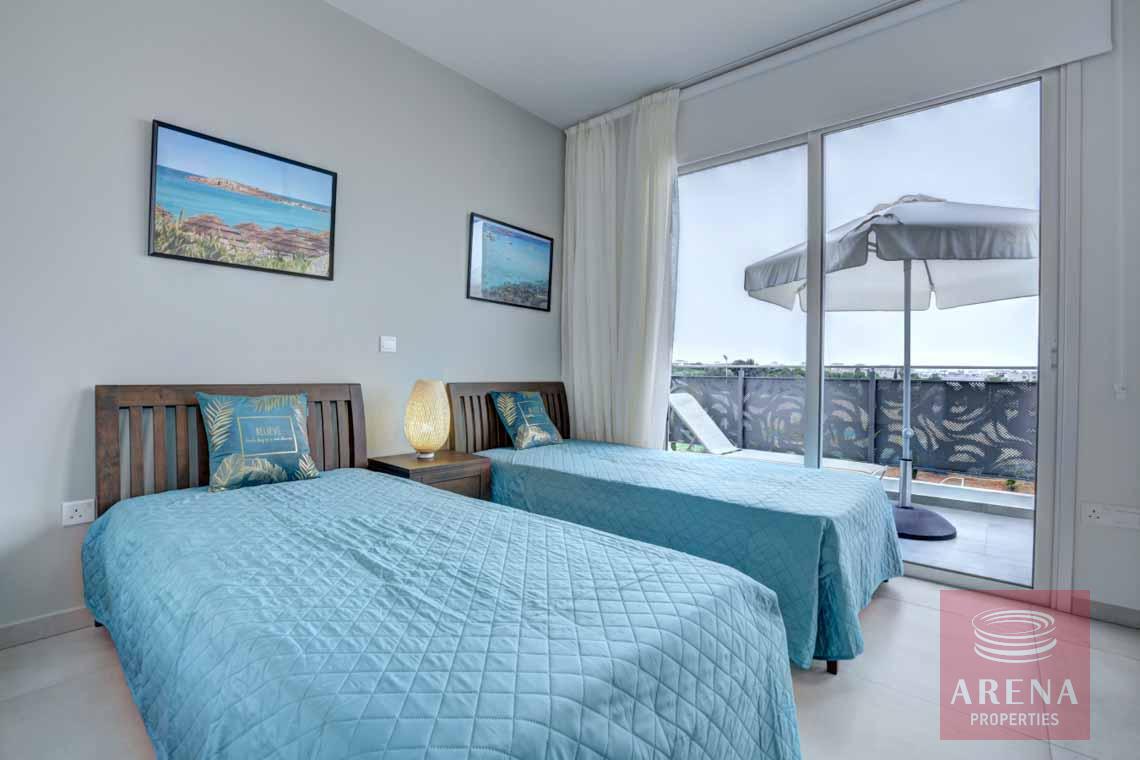 Modern 2-bedroom top-floor apartment located in a quiet resort complex at the heart of Kapparis, a year-round seaside resort town in the Protaras area. This luxury seaside complex with extensive gardens, paths, green areas throughout, three communal swimming pools, one Olympic sized with separate children’s pool, a fenced playground, a sports field, and a tennis court, all for resident use is perfect for holidays in the sun.