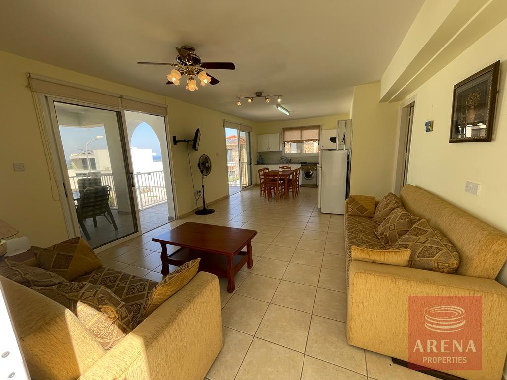 Beautiful 3-bedroom apartment for rent in a quiet residential area of Paralimni Town. In the complex, there is a communal swimming pool and from the veranda, you will have beautiful sea views.