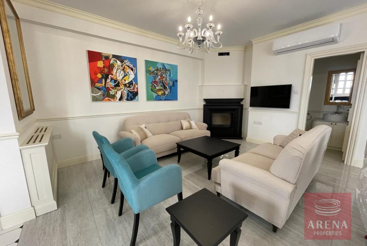 Approximately 180 sq. m + large, covered veranda + large roof garden with barbeque ▪ Living room with smart TV and dining table ▪ Sitting room with large screen smart TV and dining table (on 2nd floor) ▪ Master en-suite bedroom ▪ 2nd en-suite bedroom ▪ 3rd bedroom with toilet and shower next to it (on 2nd floor) ▪ 2 kitchens (one on 2nd floor) ▪ 2 Video door phones ▪ Fully air conditioned ▪ Fully gas central heated ▪ 2 Fireplaces (one on 2nd floor) ▪ Fully equipped with top of the range brand new white goods ▪ Autonomous wi-fi and plug in internet in all areas ▪ Beautiful decoration with curtains / roller blinds / paintings in all areas ▪ Basement large storeroom