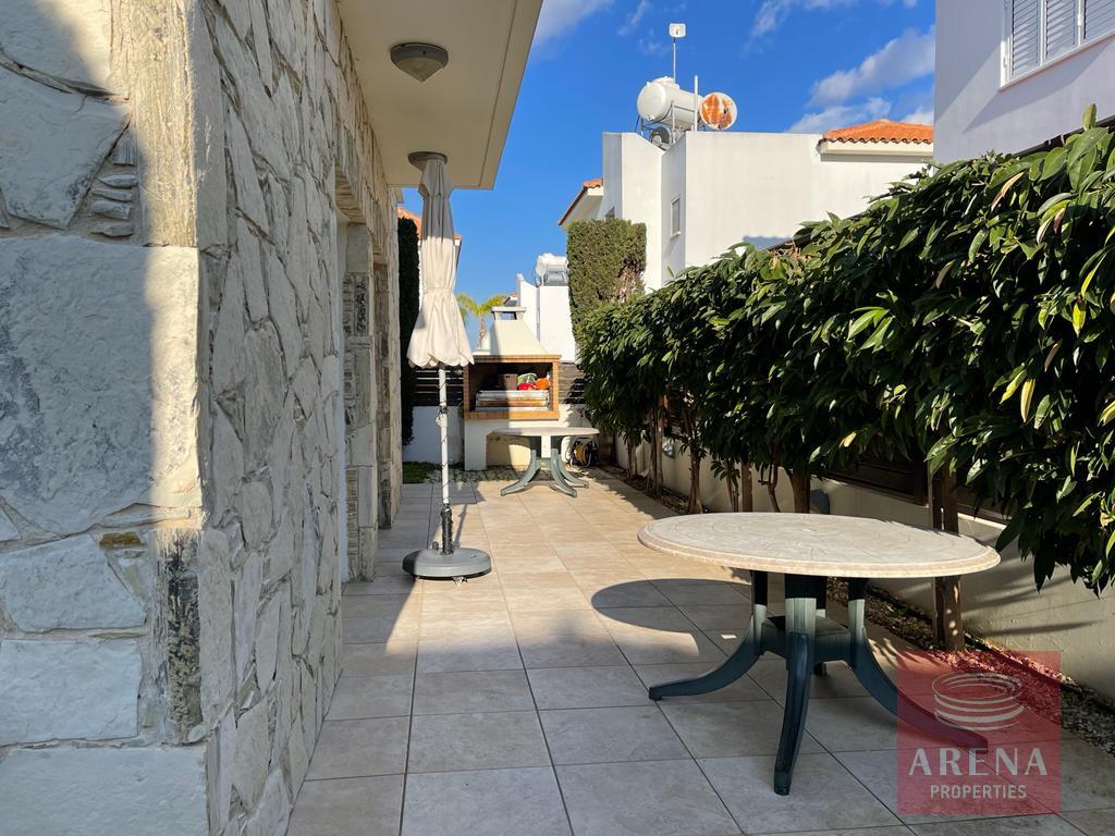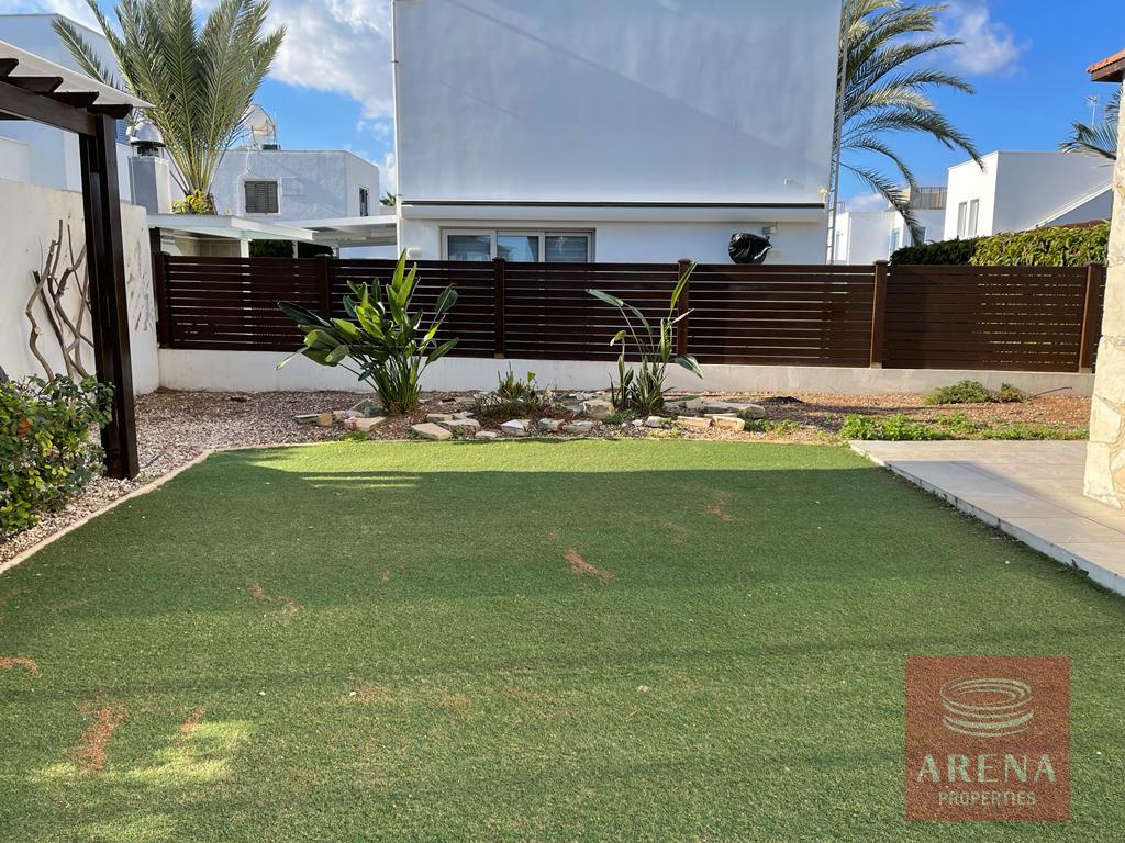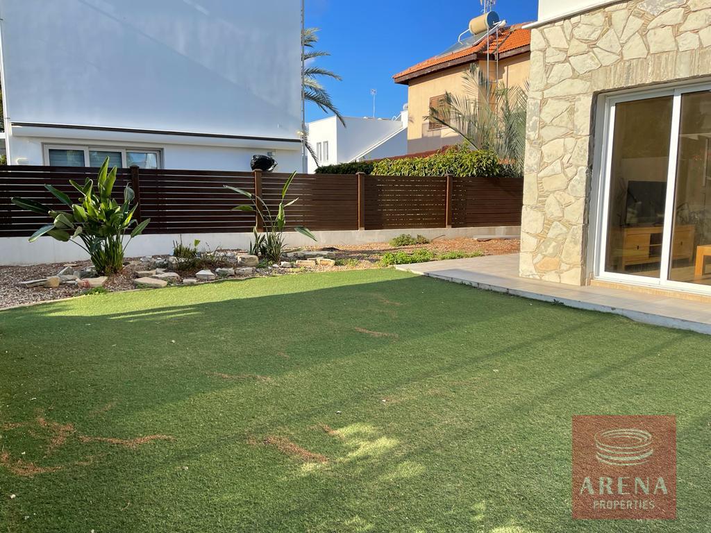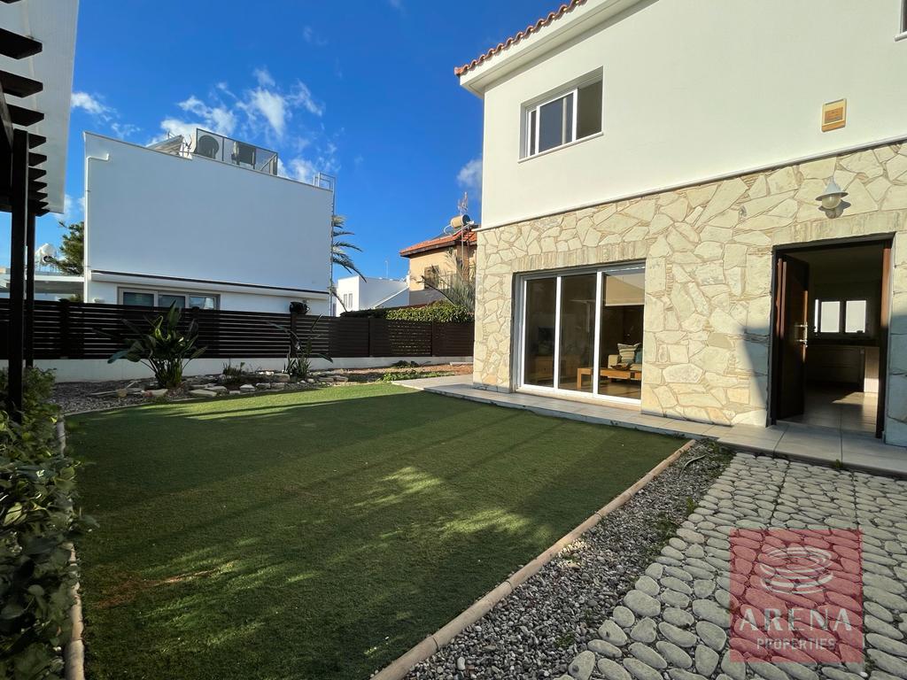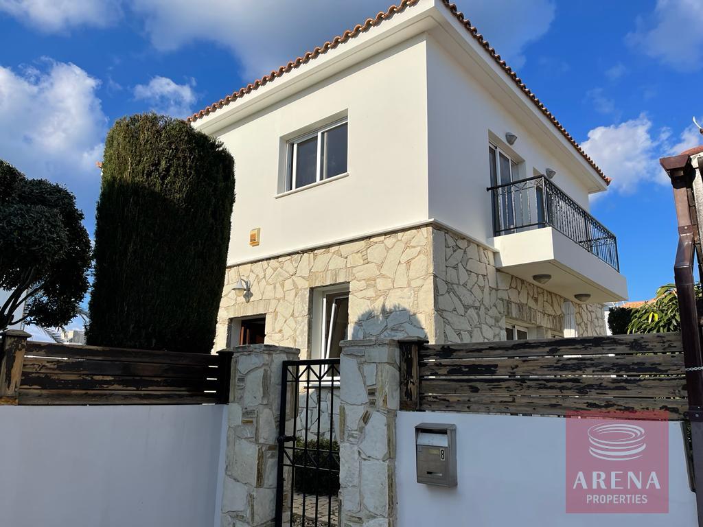Beautiful 3 bedroom villa set within a mature lush landscaped garden with grassed lawn and automatic watering system, only a few minutes walk to the sandy beach of Malama Bay. Located in Kapparis very close to shops and restaurants and bus route stop, this villa is positioned on a quiet cul de sac plot totally secure and private with some sea views. The luxurious furniture and fittings are exquisite and in excellent condition, the whole house has been finished to a luxury standard including parquet flooring upstairs, granite tops, high spec tiles and ceramics in bathrooms. Modern functional Italian fitted kitchen features a work station with integrated oven and top range stainless steel appliances including energy efficient dishwasher. There is plenty of additional storage and the washing machine is conveniently housed in the hallway. Each window is dressed with neutral blinds and curtains and the house is very light, spacious and homely. Fully air conditioned, gated off road parking for 2 cars.