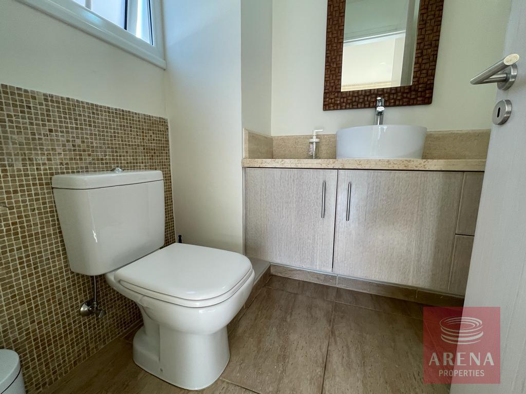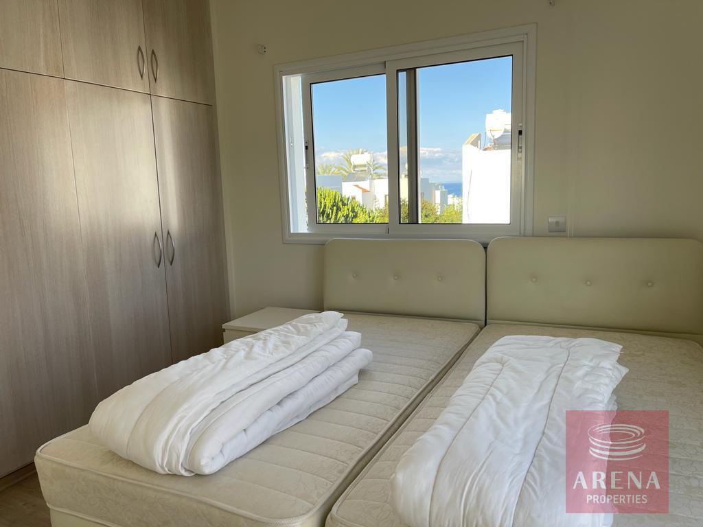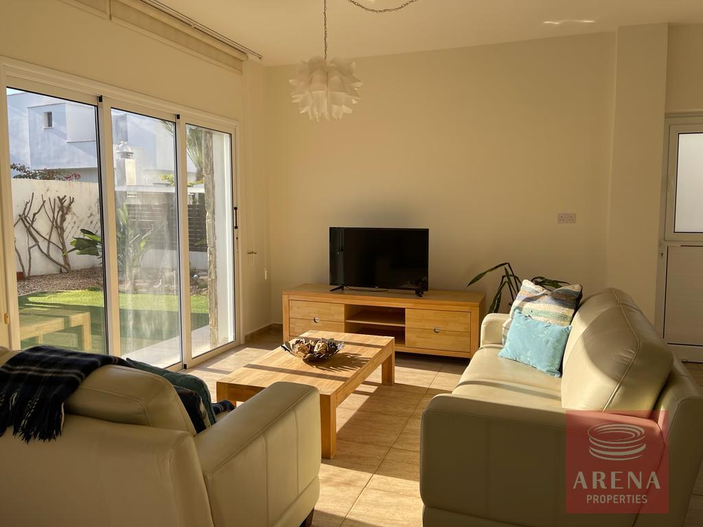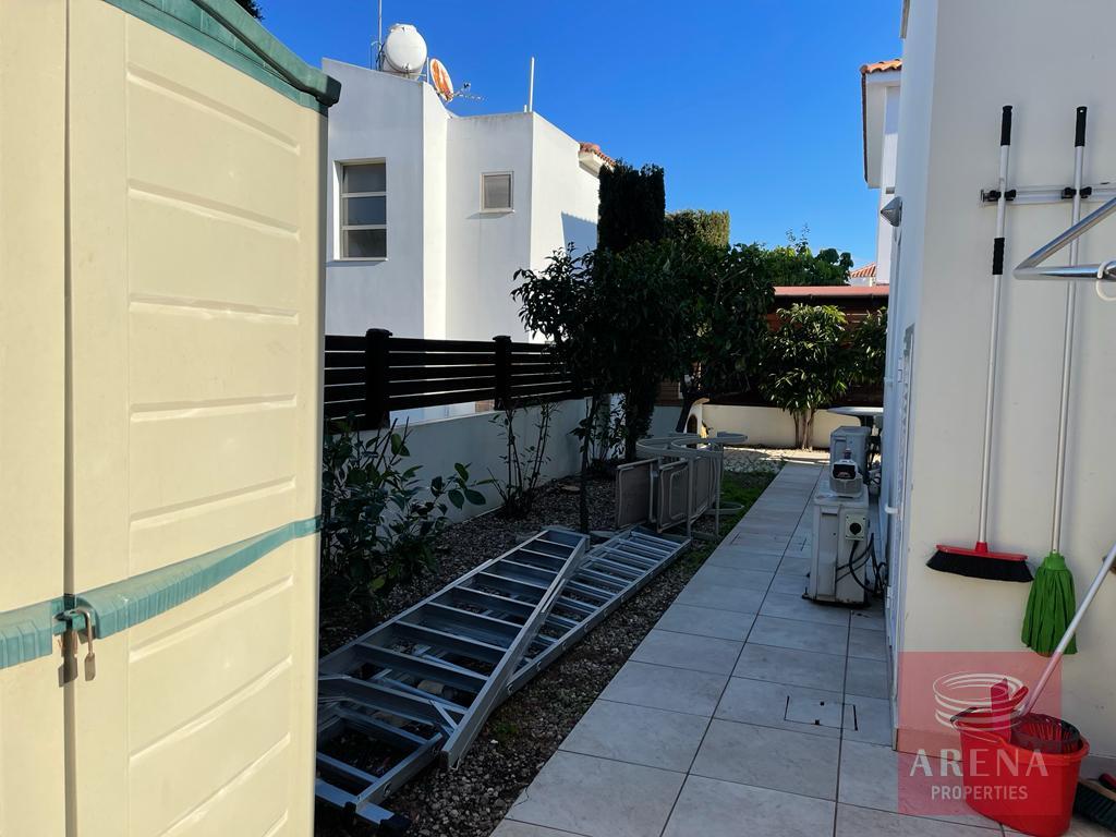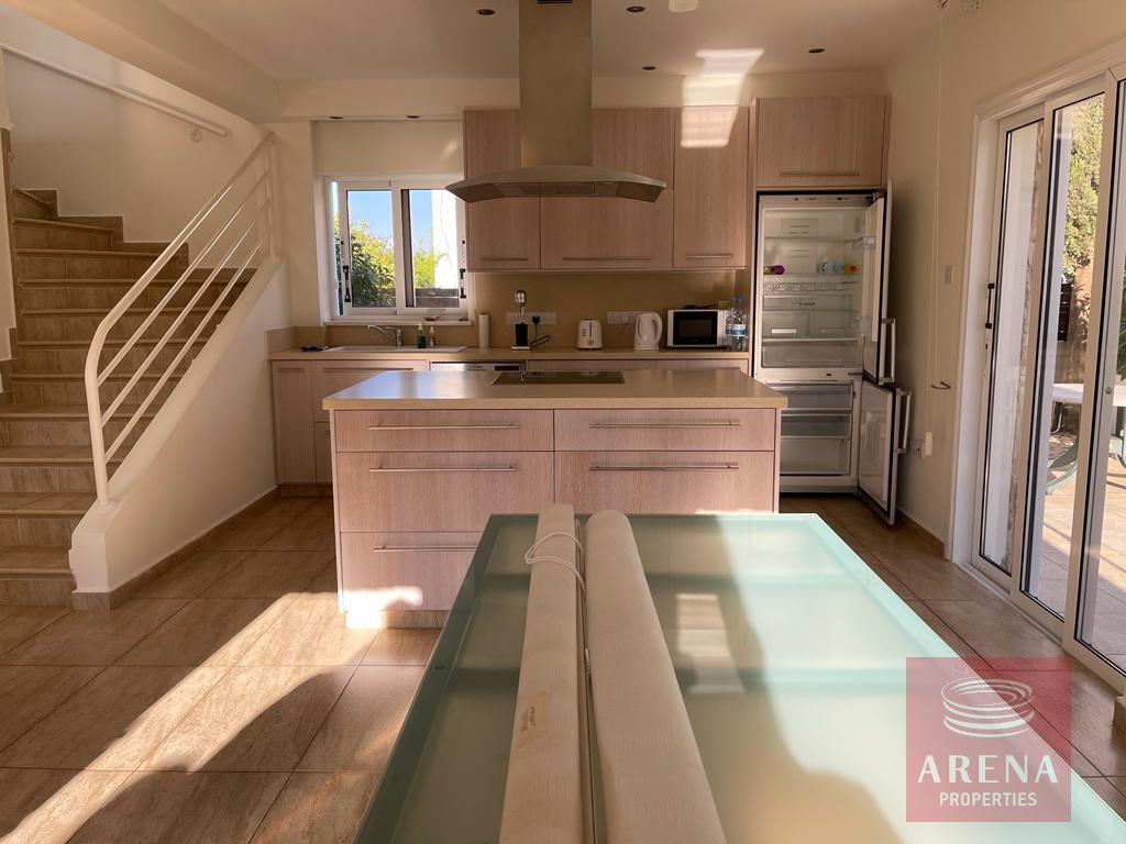 Beautiful 3 bedroom villa set within a mature lush landscaped garden with grassed lawn and automatic watering system, only a few minutes walk to the sandy beach of Malama Bay. Located in Kapparis very close to shops and restaurants and bus route stop, this villa is positioned on a quiet cul de sac plot totally secure and private with some sea views. The luxurious furniture and fittings are exquisite and in excellent condition, the whole house has been finished to a luxury standard including parquet flooring upstairs, granite tops, high spec tiles and ceramics in bathrooms. Modern functional Italian fitted kitchen features a work station with integrated oven and top range stainless steel appliances including energy efficient dishwasher. There is plenty of additional storage and the washing machine is conveniently housed in the hallway. Each window is dressed with neutral blinds and curtains and the house is very light, spacious and homely. Fully air conditioned, gated off road parking for 2 cars.