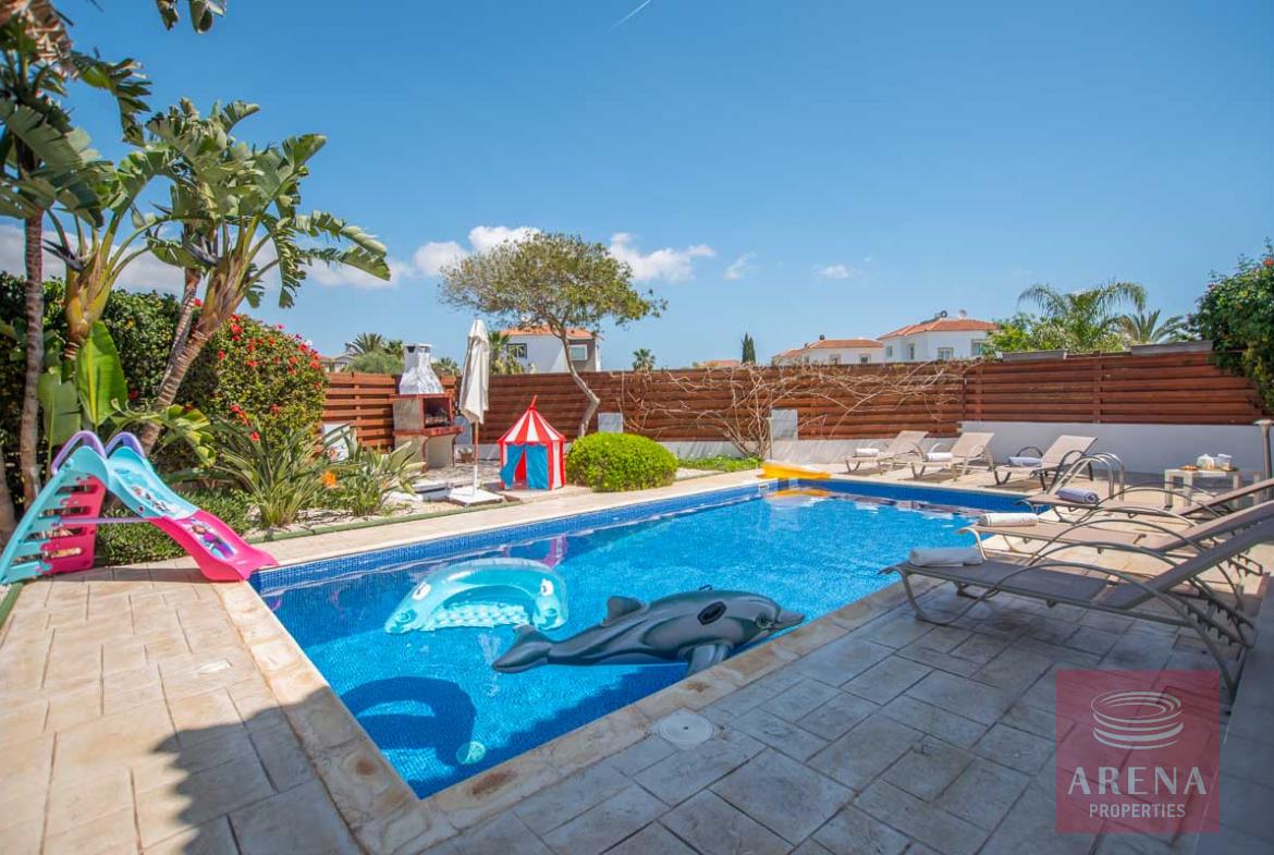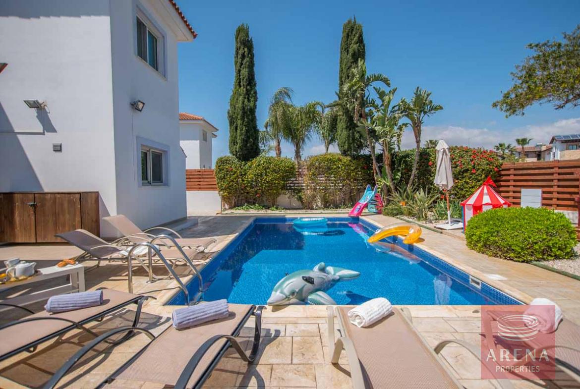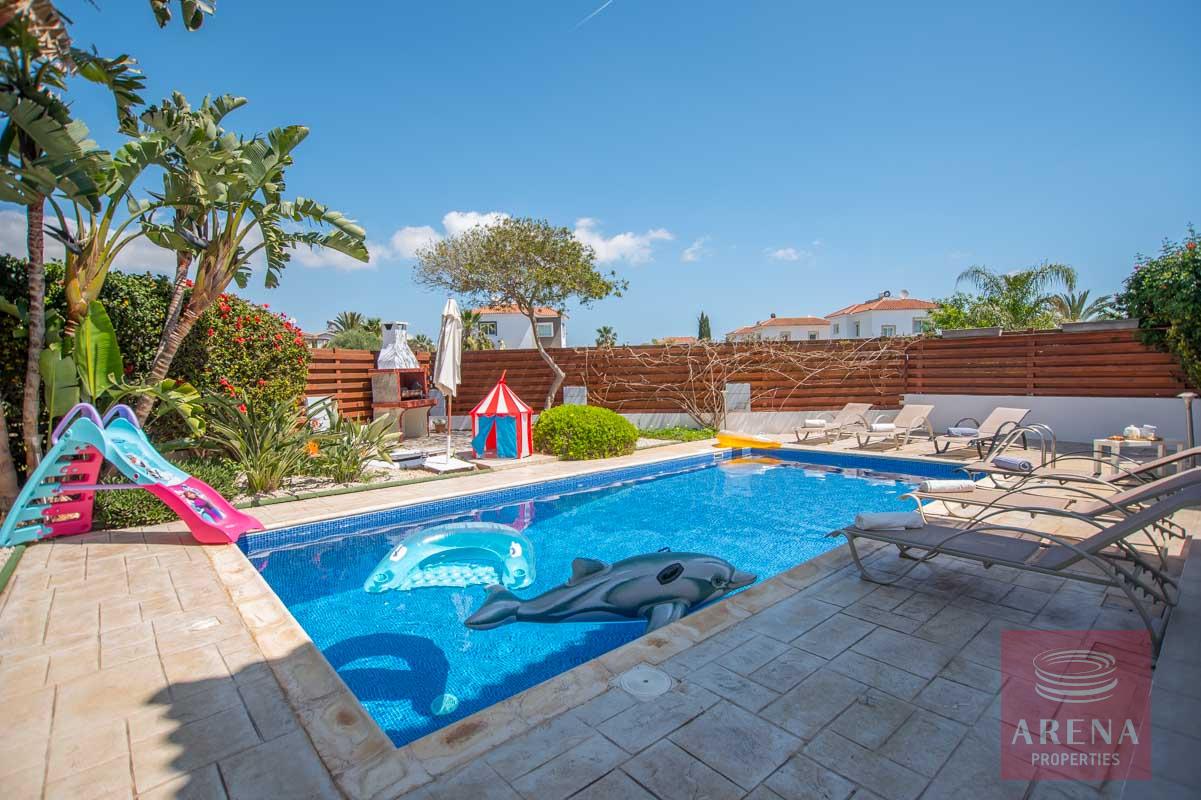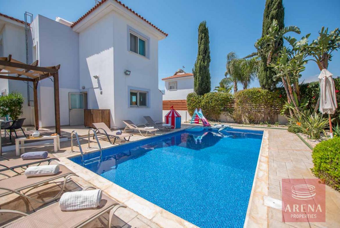 Villa features 3 spacious inviting bedrooms, a master bedroom offering the comfort of a double bed and 2 other bedrooms both with two single beds serviced by the main bathroom, and a guest WC on the ground floor. The Villa is only a small distance from the beach which allows the eye to capture the exquisite view and the breathtaking waters of the Mediterranean Sea of Ayia Napa.