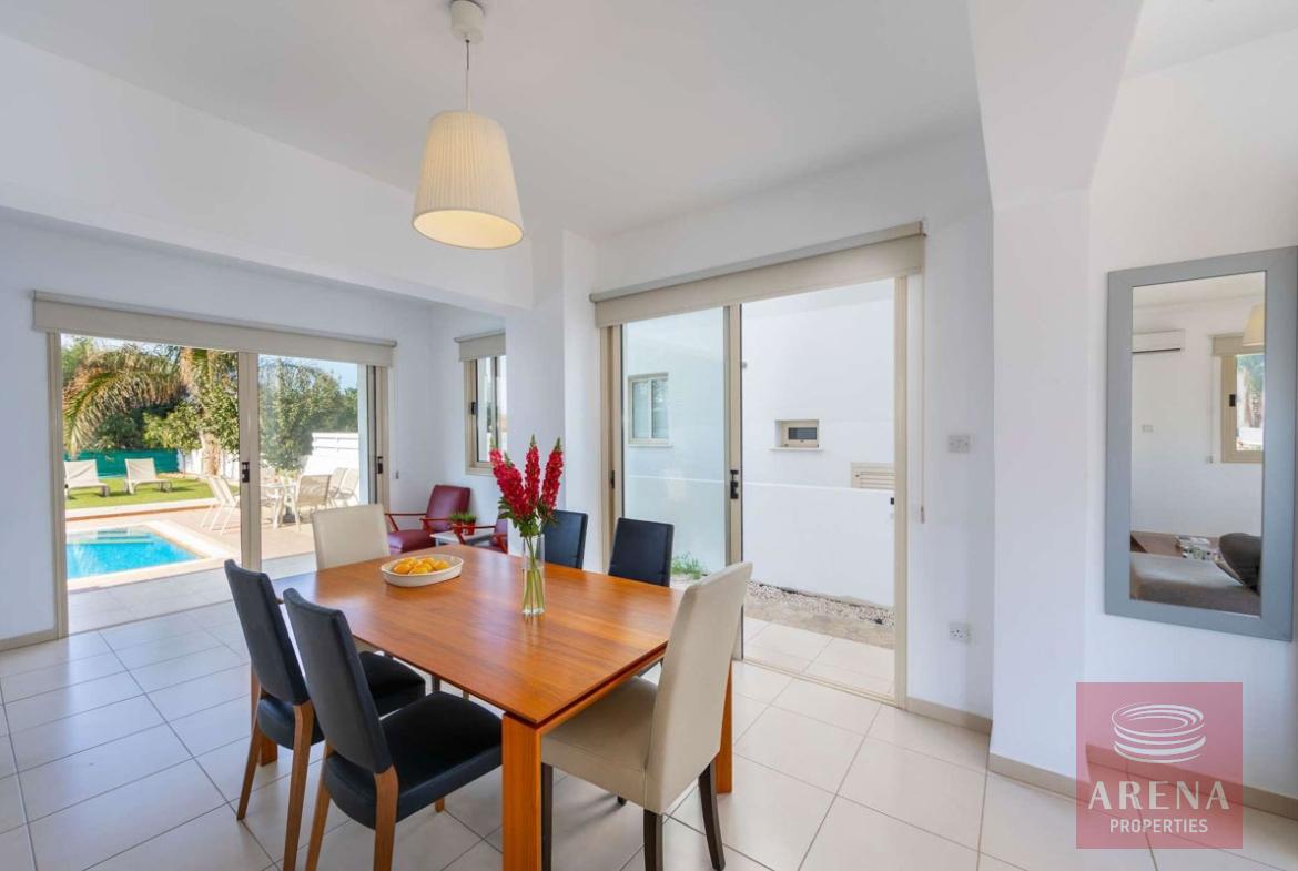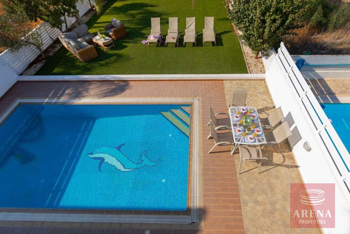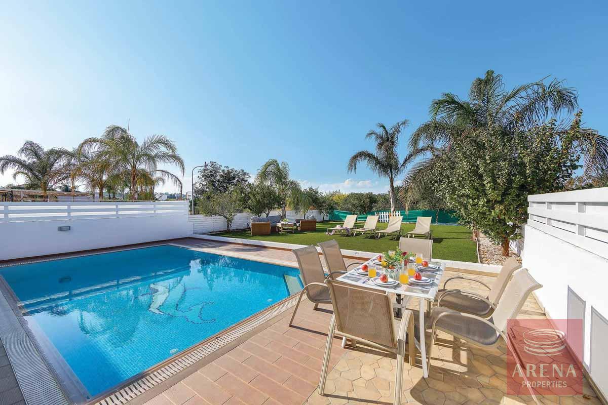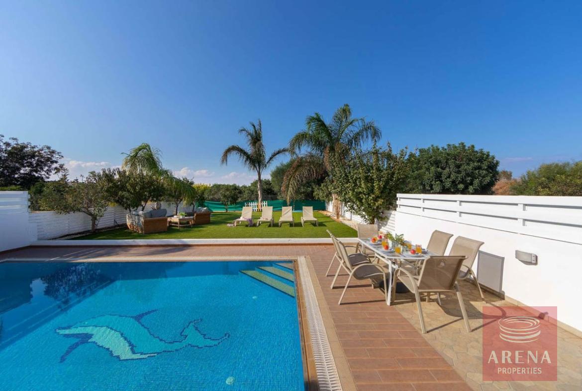 Outside dining and sitting area overlooking the pool, and the BBQ area.