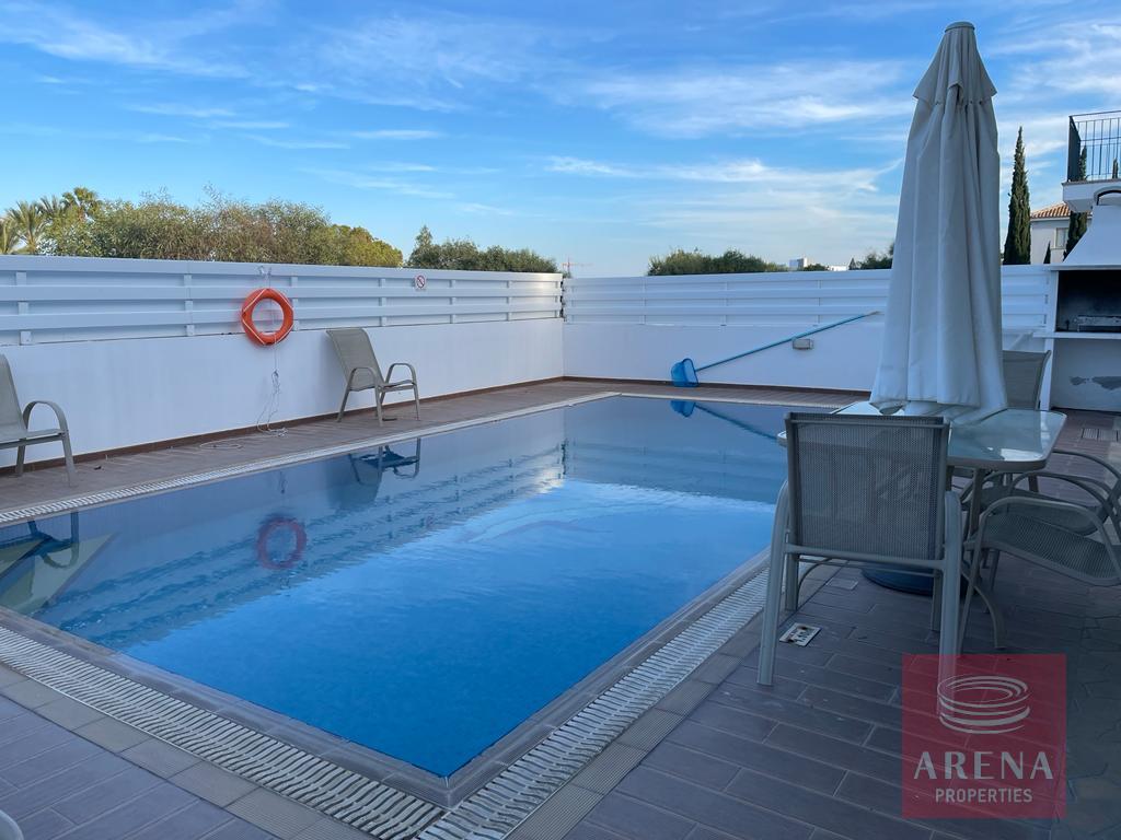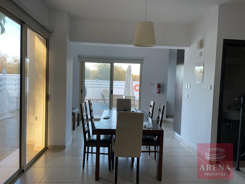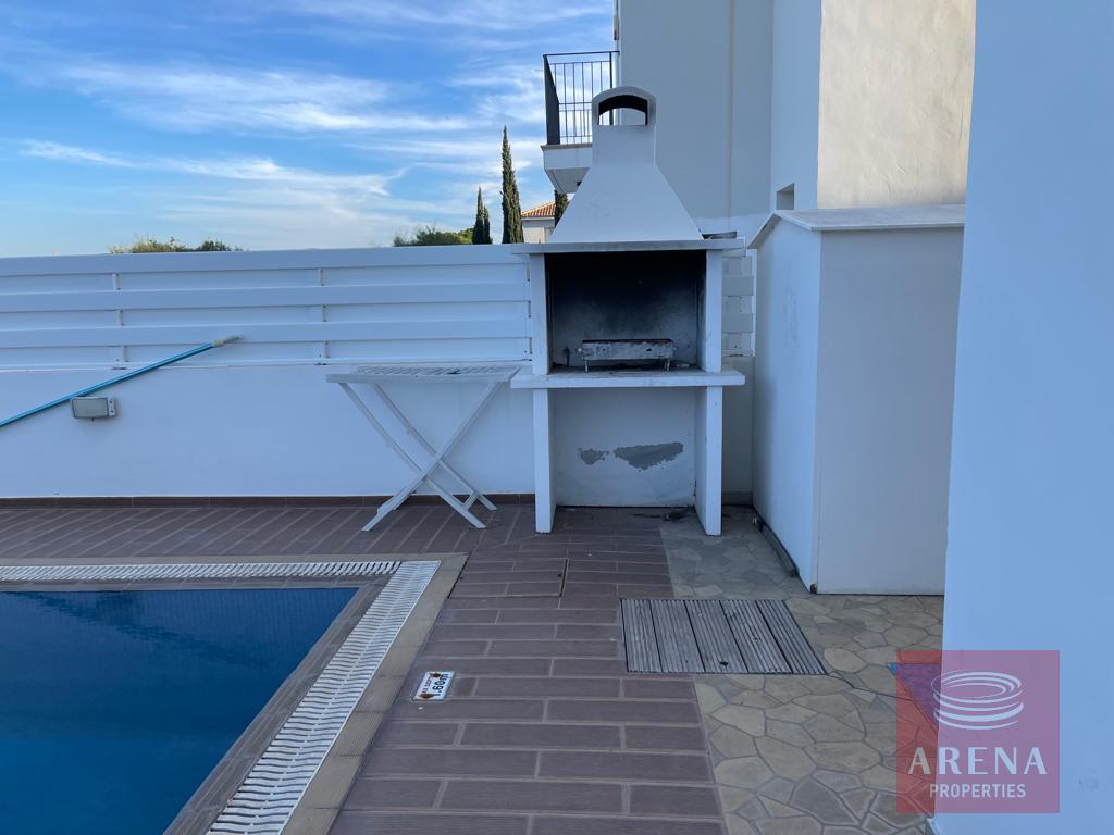 Outside dining and sitting area overlooking the pool, and the BBQ area.