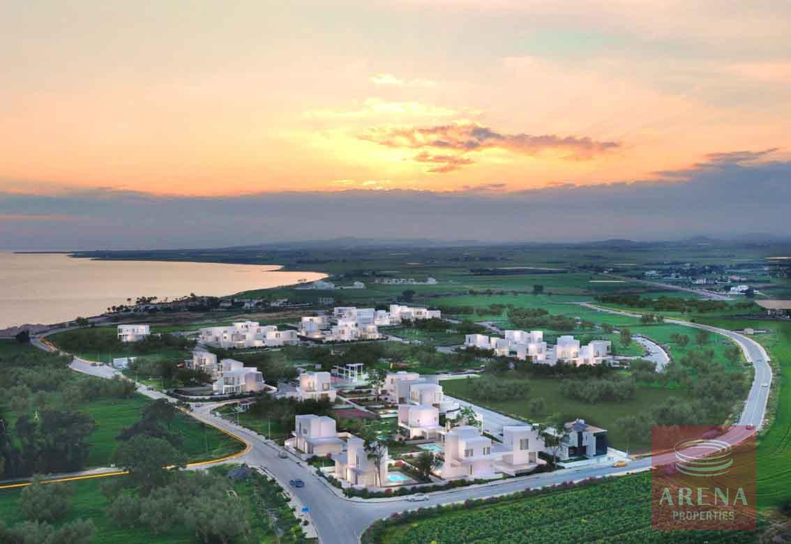 The development is located in Pervolia with only a 10-minute drive to Larnaca city center and 3km from Kiti. These exclusive 2-storeys villas consist of 3-bedrooms with terraces overlooking the blue sea on very large plots of lands, landscaped gardens offer ample room for private swimming pools and barbeque areas. Each villa is also equipped with cameras and alarm systems. The traditional styles, fixtures and finishes have been carefully selected to retain the charm and authenticity of the region. The contemporary and functional design of the residences will offer the future homeowners all comforts to be able to enjoy their homes in a tranquil setting.