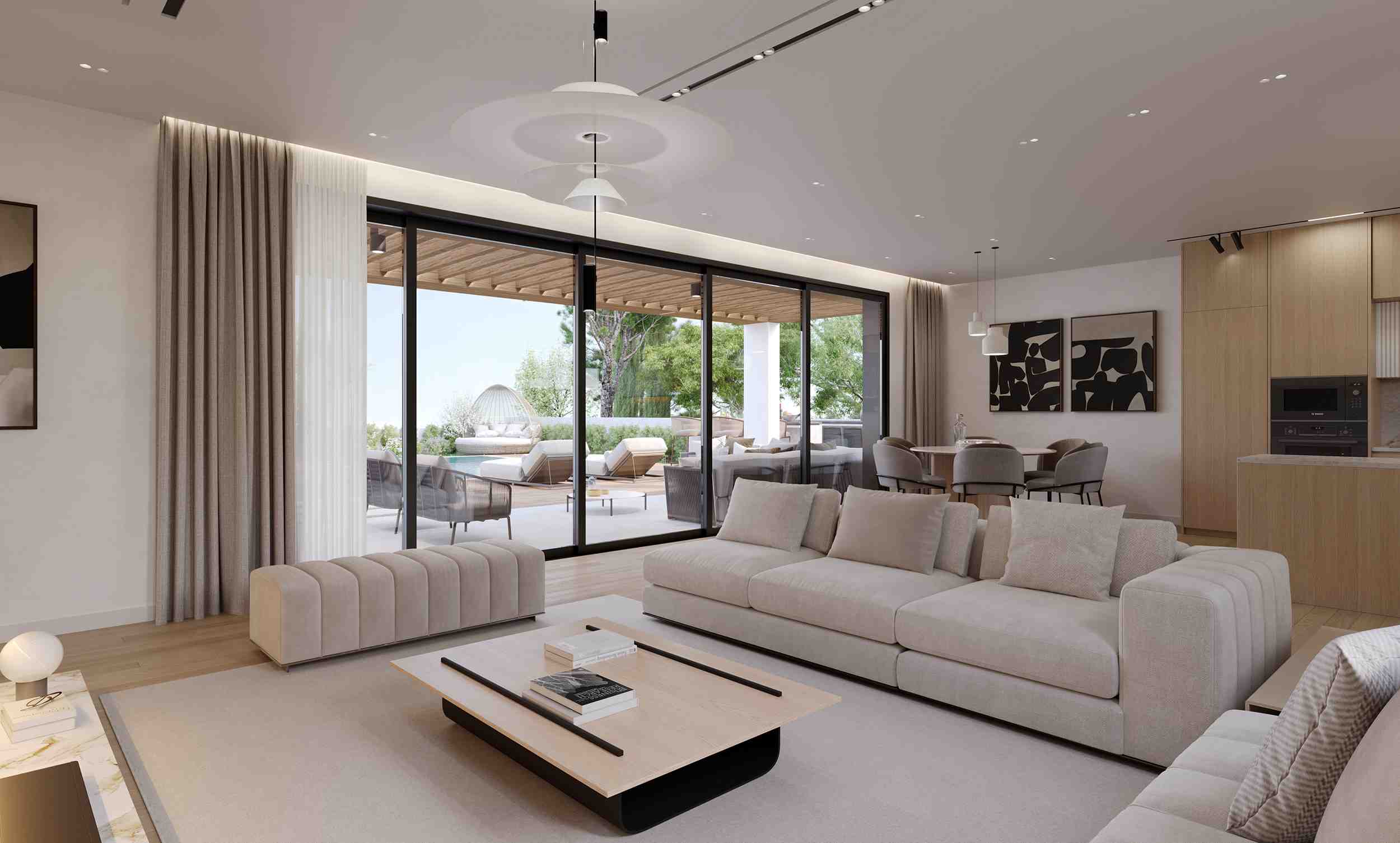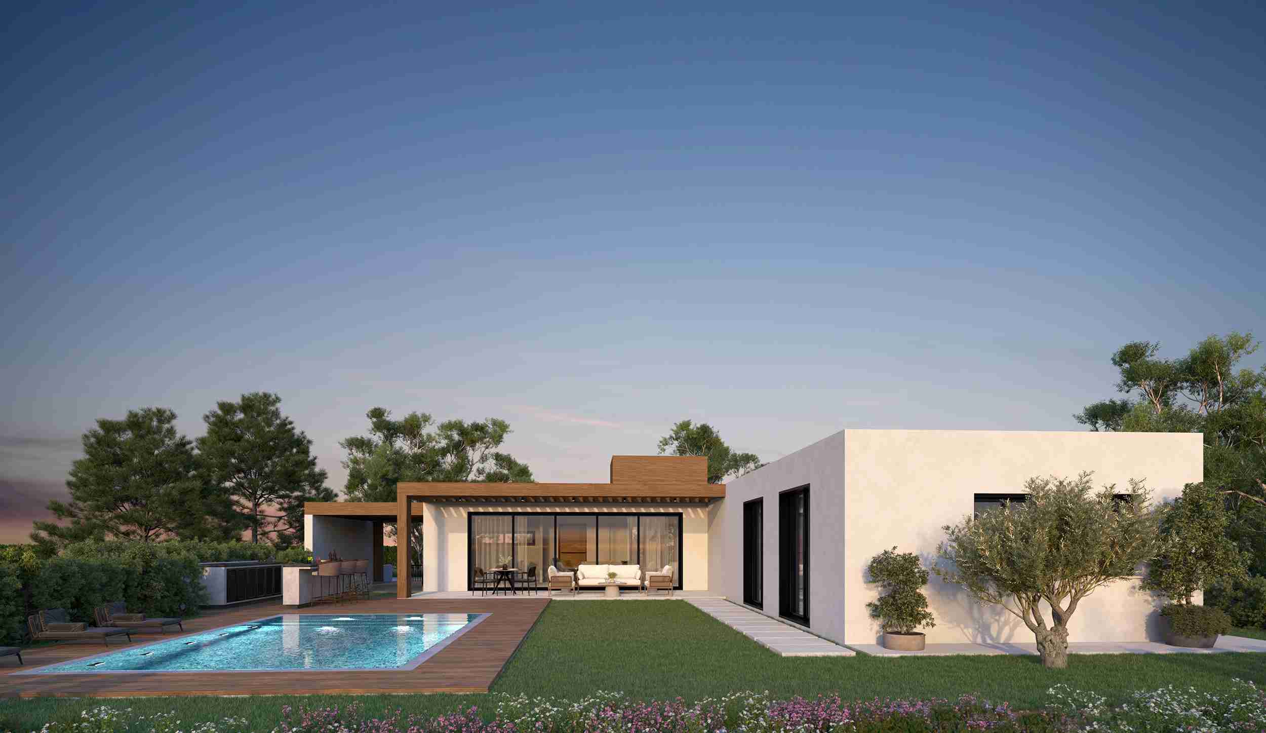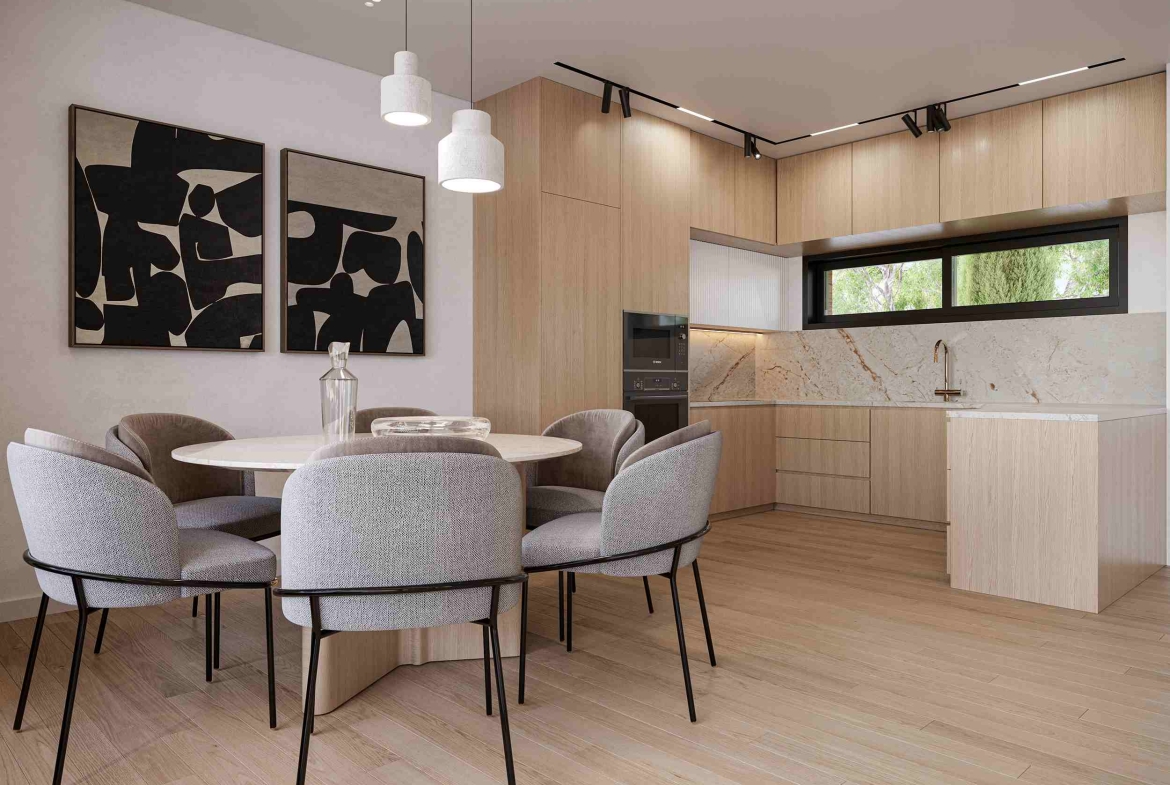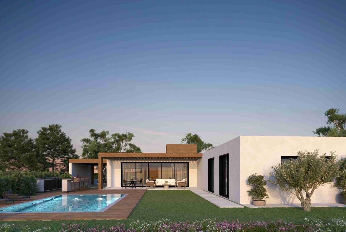 Well-sized bedrooms (one with an en-suite bathroom) are bathed in natural light, creating welcoming sanctuaries. Stylish fixtures and premium ceramic tiles complement the refined, modern aesthetic of the bathrooms and the kitchen area. Outside, the covered parking can accommodate one vehicle, and the garden can easily be transformed into a beautiful paradise with the installation of the optional swimming pool.