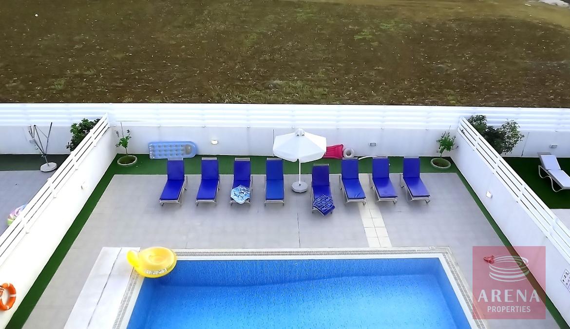 This is a two-story villa, with a lovely modern design, a wonderful pool for relaxation and a roof terrace for memorable moments. The villa consists of 4 bedrooms (2 X double bed & 2 X set of twin beds). There is an extra advantage of the one bedroom (double bed) being on the ground floor. There is an open plan lounge with dining area and a fully equipped kitchen for those who like to self-cater.