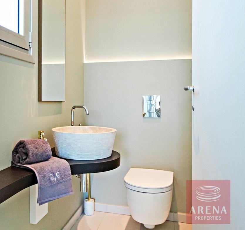 One of the 9 villas in an exclusive modern development in an unspoiled seafront setting, the villa is separated from the turquoise sea by only the front row of the development’s villas. In this upscale environment you are only a few steps from the untouched Mediterranean Sea, and a few minutes by car from the nearest sandy beach with organized bathing and other leisure facilities.