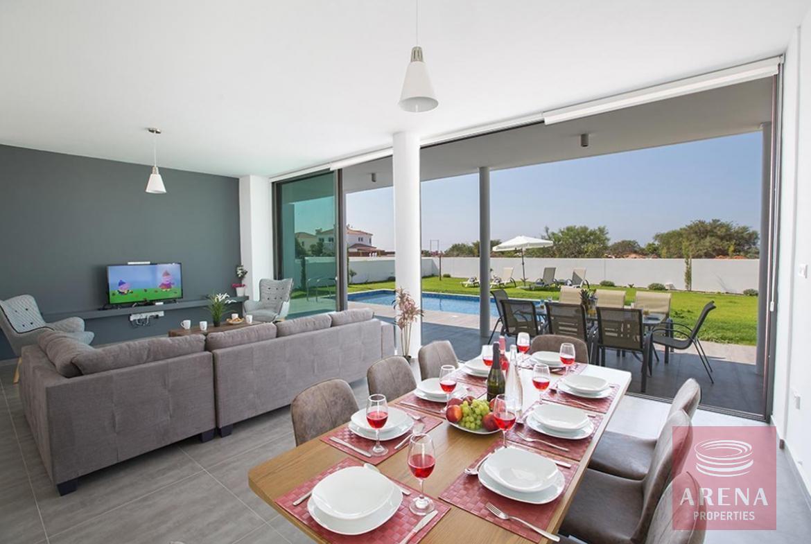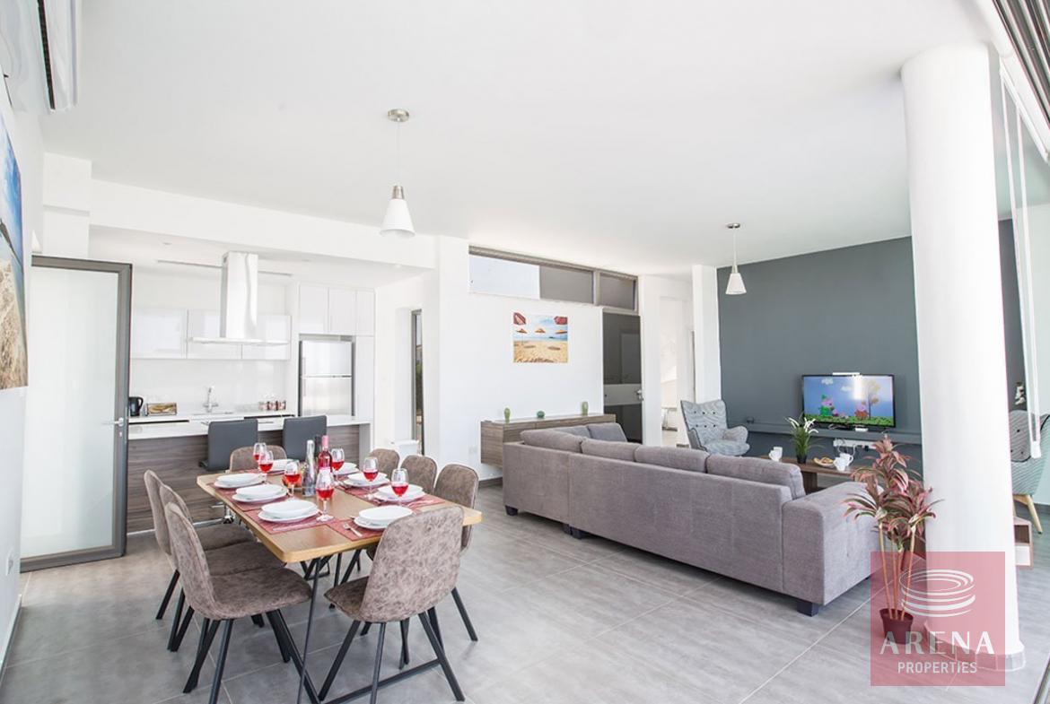 This stunning and new four bedroom villa is located in Ayia Napa, close to all beaches and amenities. As you enter the villa, you will find the large open-plan living room, kitchen and dining area, surrounded by large patio doors that lead to the garden and pool area.