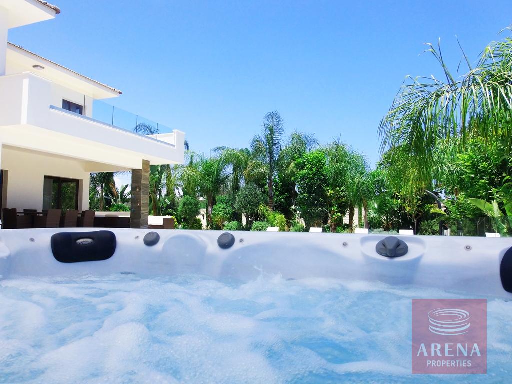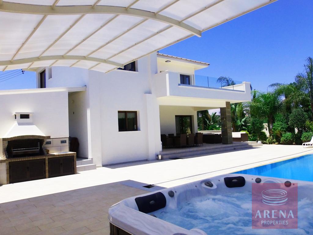 A Luxury 4-bed villa is offering huge landscaped gardens, a private overflow swimming pool, Jacuzzi, Sauna, Gym, and BBQ area. Located only 600 meters from the magnificent Konnos bay and the Blue Lagoon, which is one of the most beautiful beaches on the island.