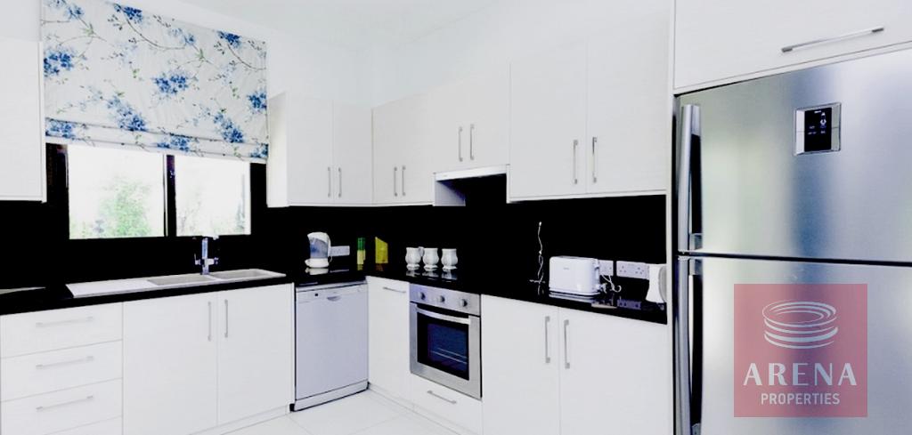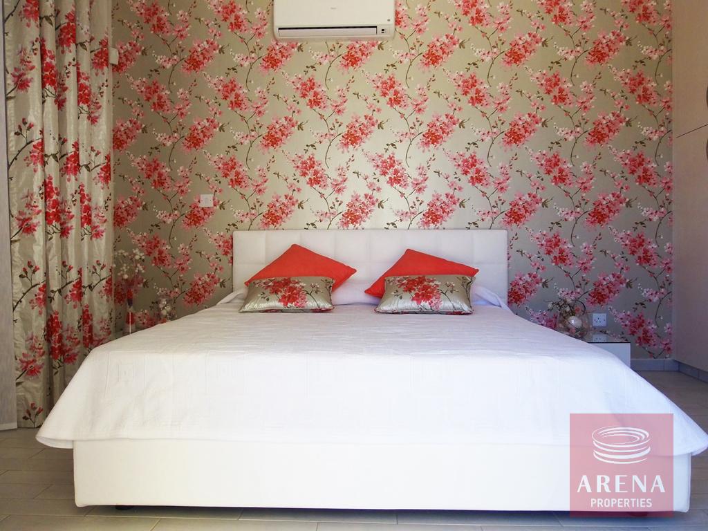 The ground floor of the villa has an open plan fully equipped kitchen, dining area and spacious living area with guests W.C. from this level you can access your private garden, your private swimming pool with the outdoor shower leading to the superb Jacuzzi. The spacious garden has been designed with a purpose-built BBQ cooking station with a traditional Cypriot oven, and 2 large shaded areas perfect for alfresco entertaining and relaxing out the sun with comfort and style.
