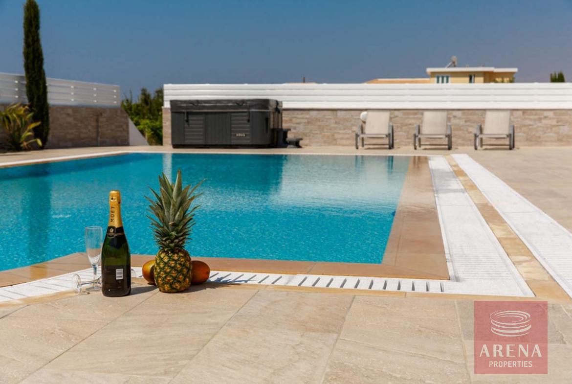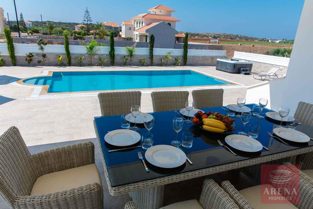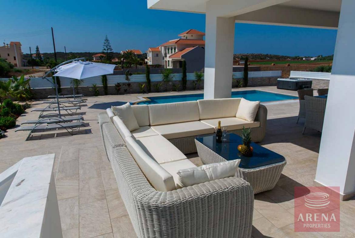 A Luxury 4-bed villa is offering huge landscaped gardens, a private overflow swimming pool, Jacuzzi, Sauna, Gym, and BBQ area. Located only 600 meters from the magnificent Konnos bay and the Blue Lagoon, which is one of the most beautiful beaches on the island.