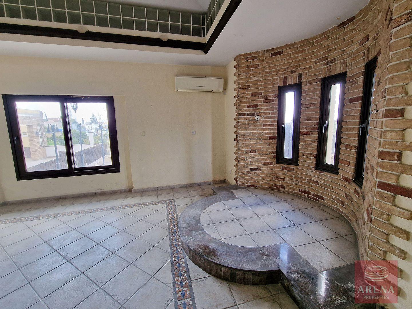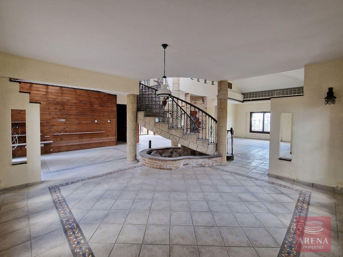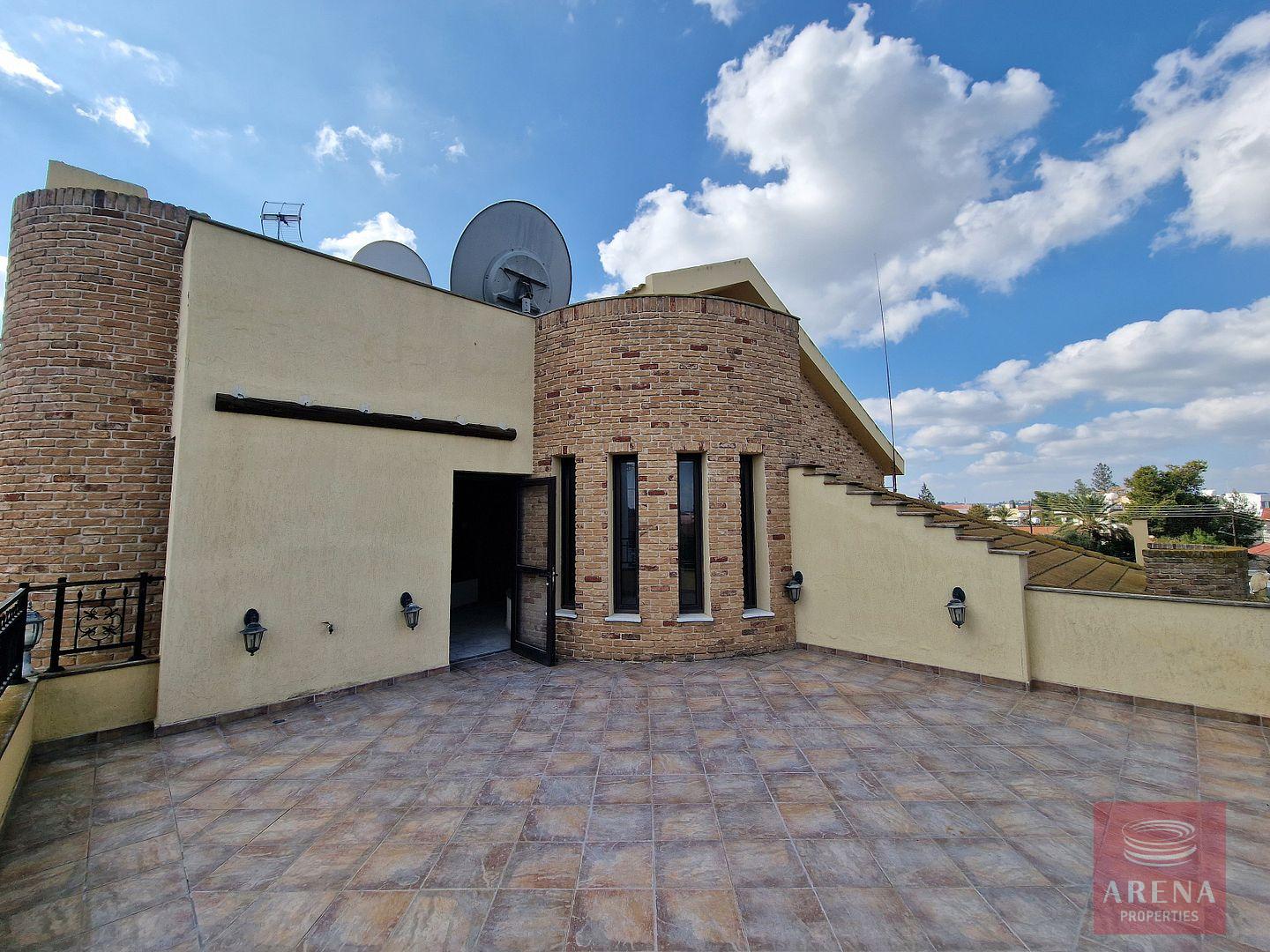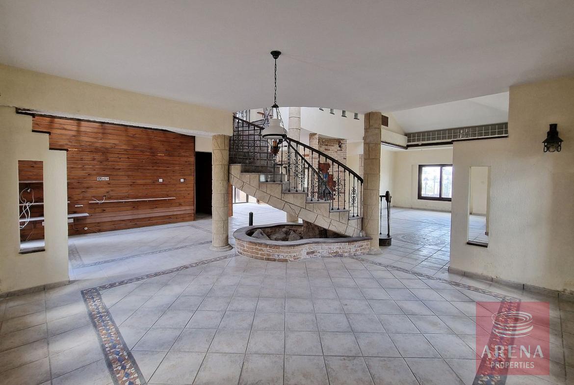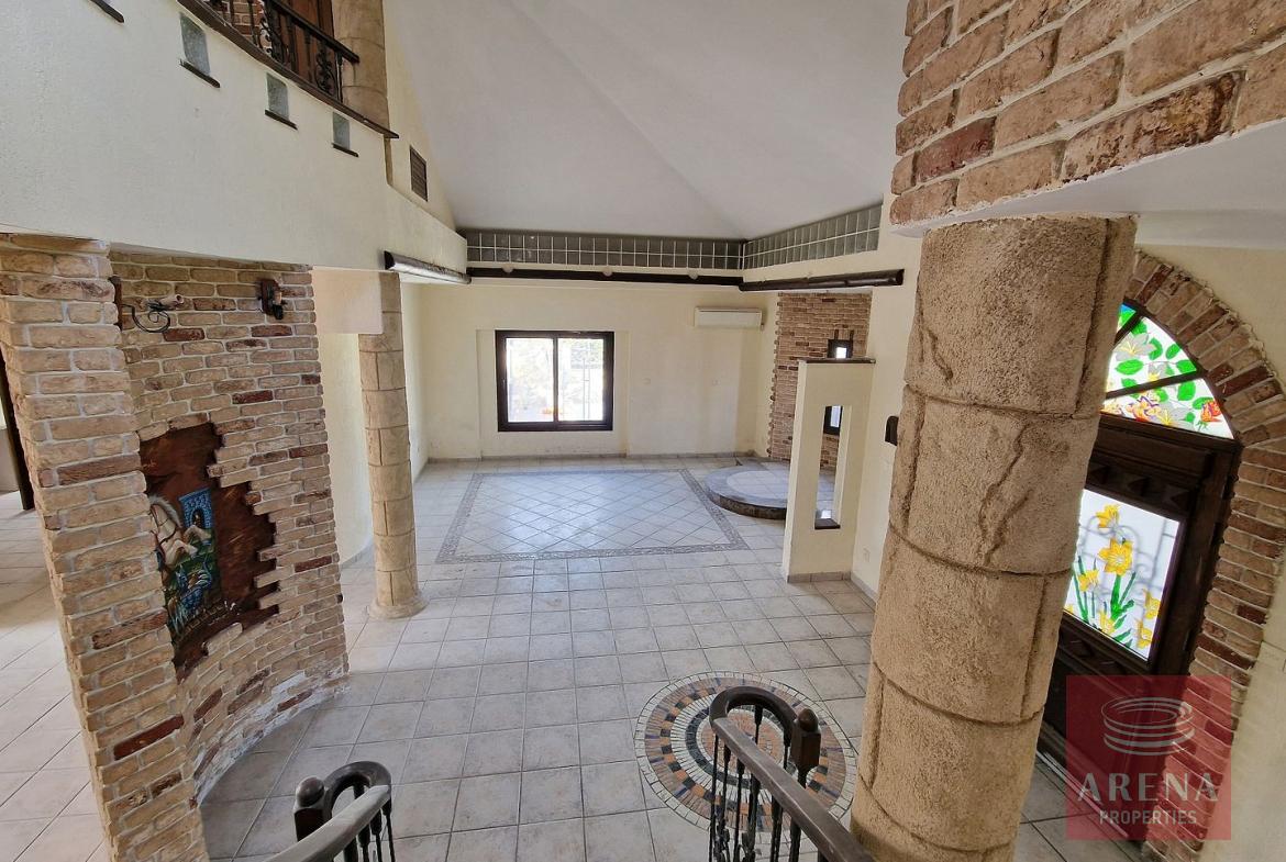 Two-floor house with an attic in Dali, Nicosia. The ground floor is comprised of an open plan sitting and living area with a fireplace, a kitchen, a laundry room, a guest W.C., office space with a bathroom that is used as a storage room, and a maid’s room with a bathroom.