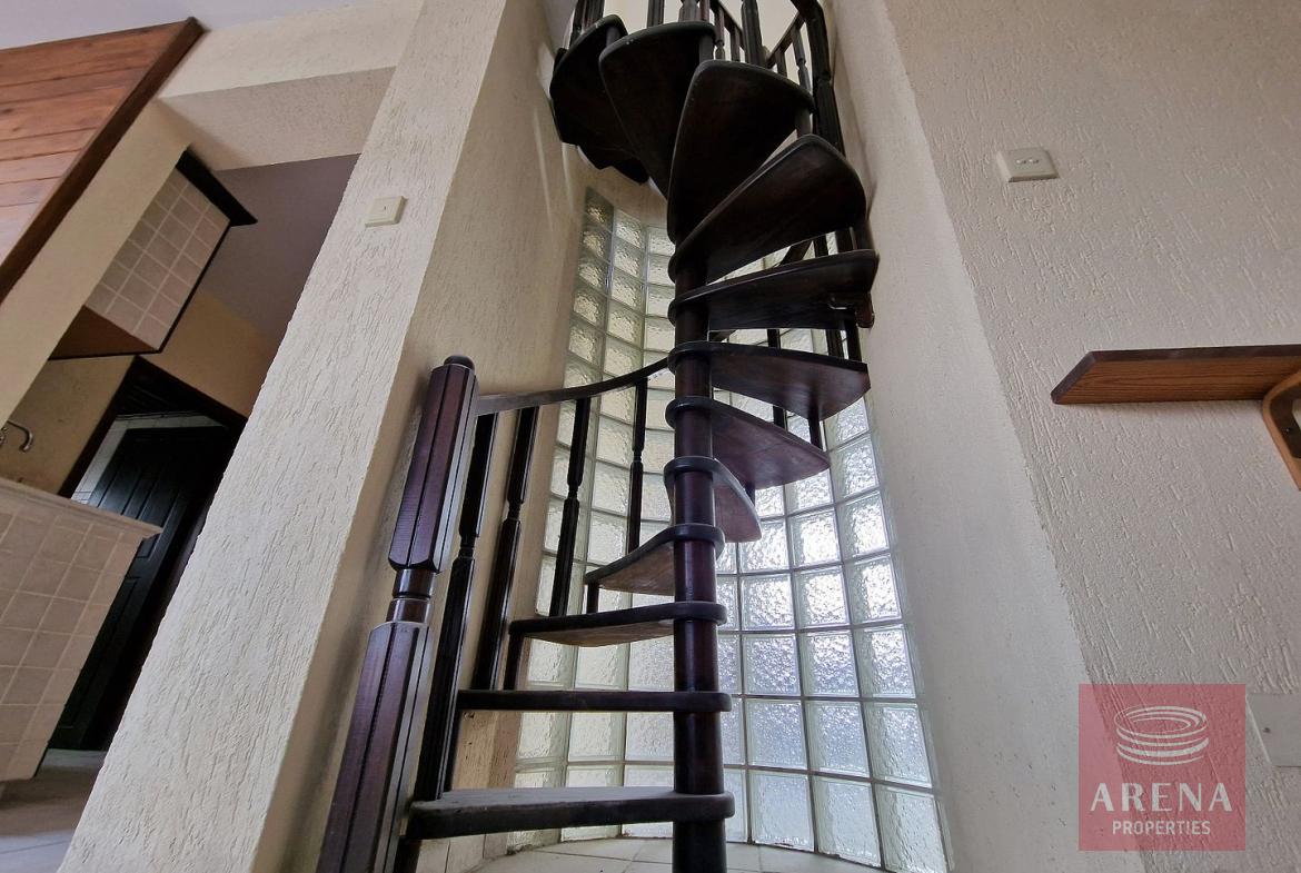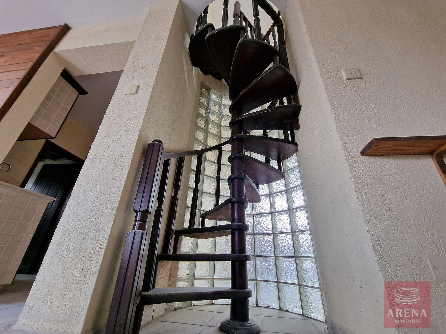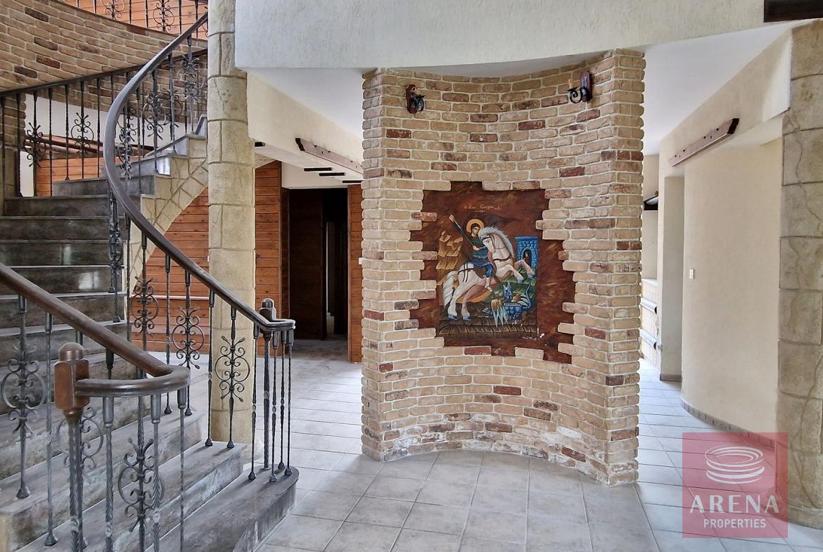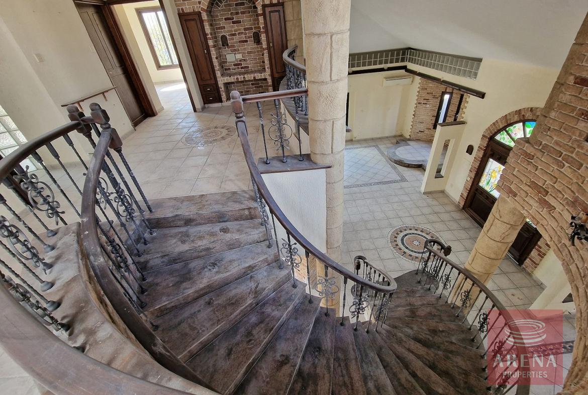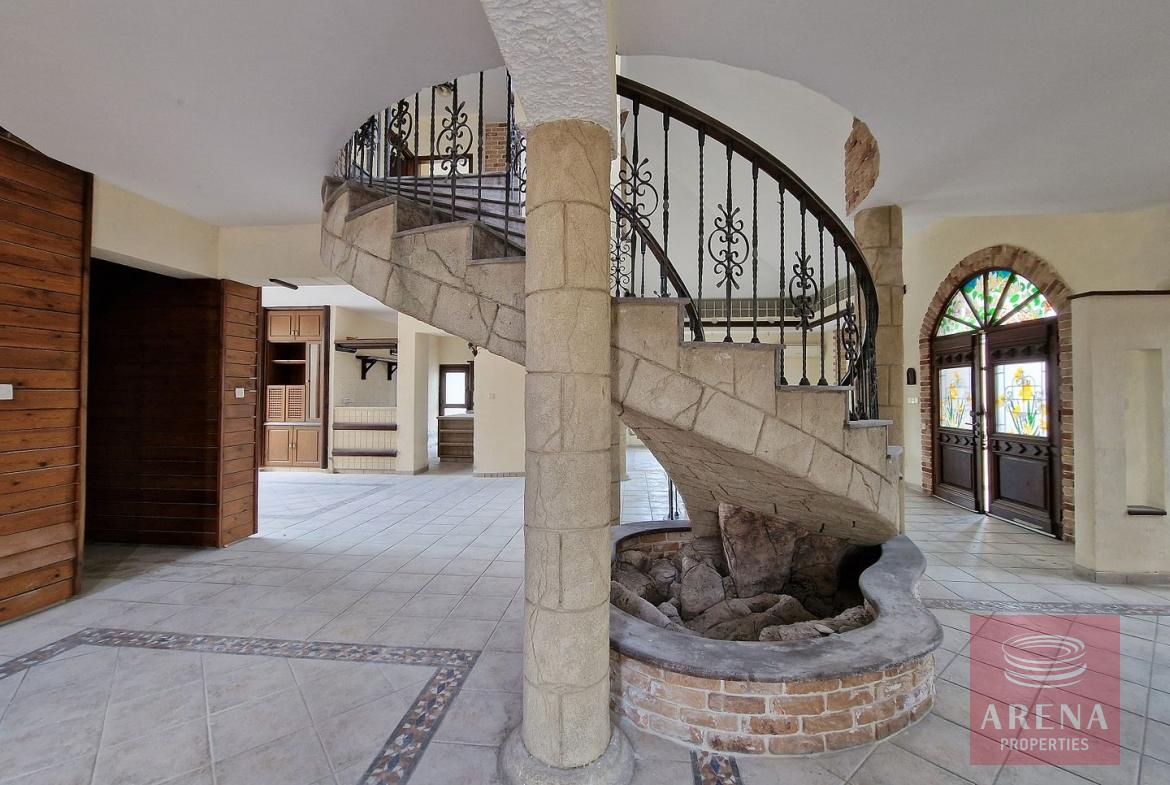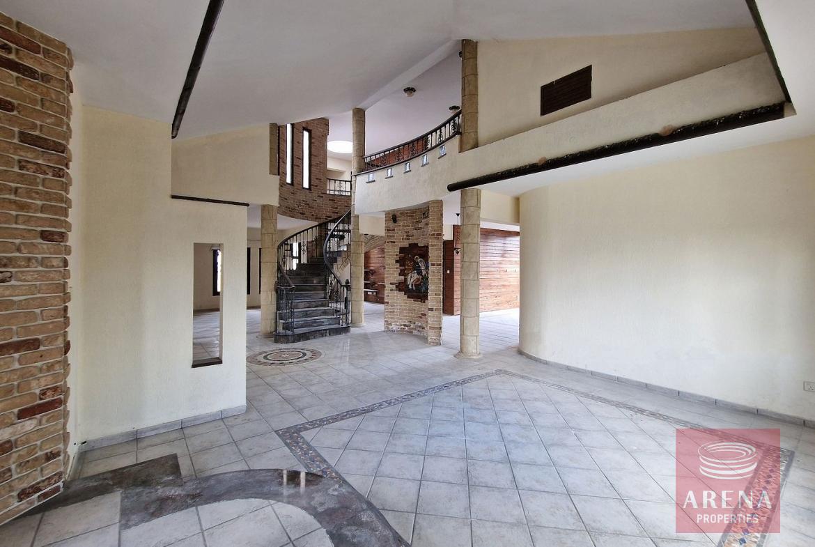 Two-floor house with an attic in Dali, Nicosia. The ground floor is comprised of an open plan sitting and living area with a fireplace, a kitchen, a laundry room, a guest W.C., office space with a bathroom that is used as a storage room, and a maid’s room with a bathroom.