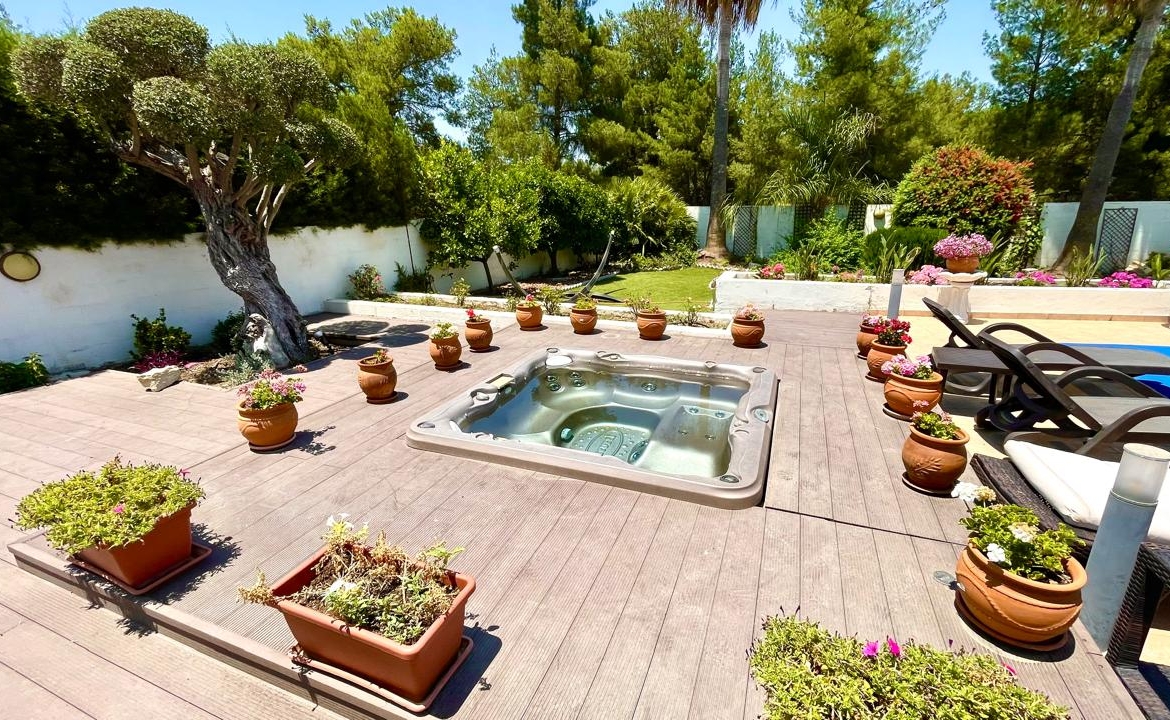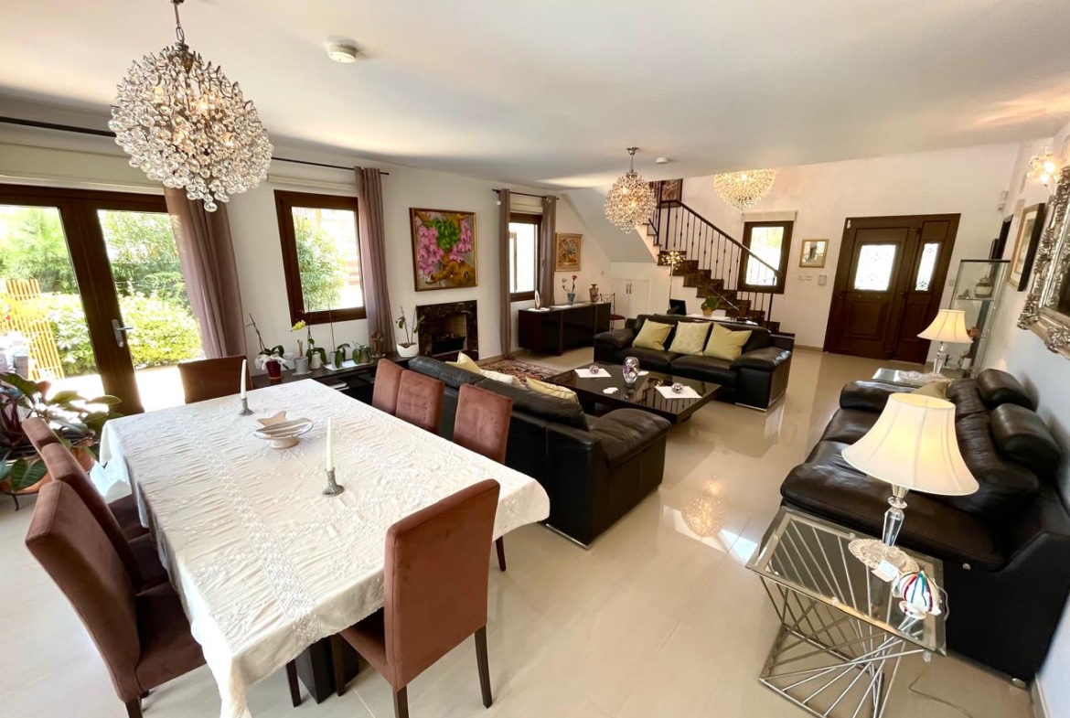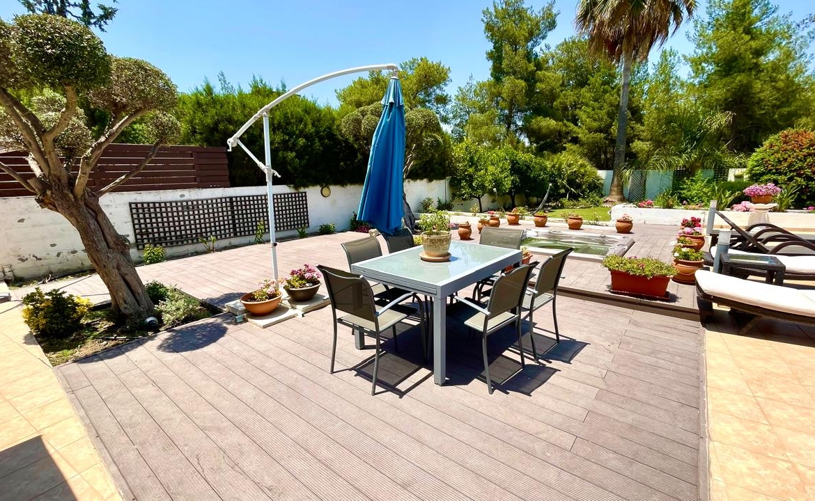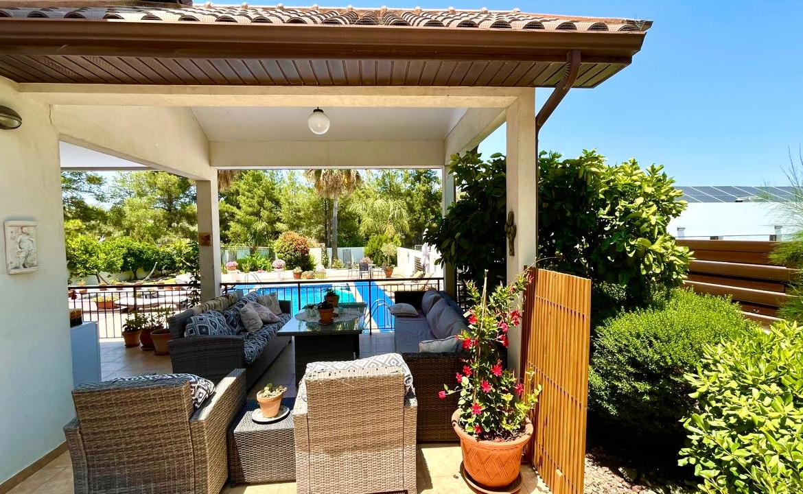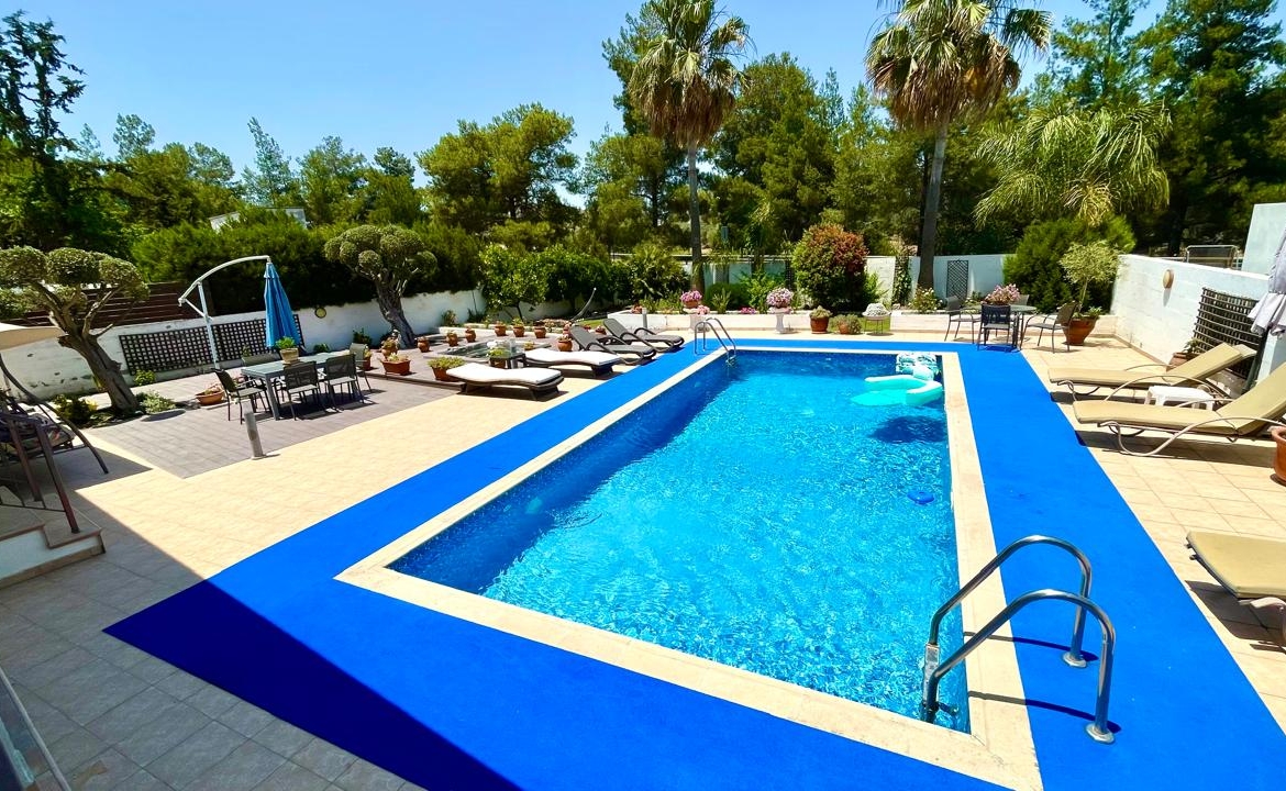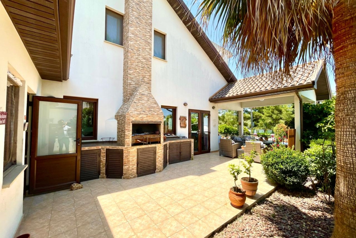 Situated in the beautiful village of Psevdas, proudly bring to the market this beautiful contemporary home. The house is built to very high specifications as is clearly visible throughout the home. The outside areas are ideal for entertaining and for enjoying a lovely lifestyle which residents of Cyprus enjoy throughout the year. With ample covered veranda areas, BBQ, decked areas with a built in hot tub, a very large pool and an outside shower and toilet area. The house also has an established garden, a double covered car port as well as a closed garage.