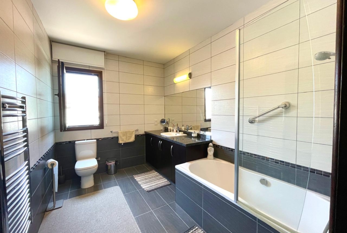 Upstairs houses three large bedrooms one of which is the master which is extremely spacious with an ensuite bathroom and walk in closet. The property also benefits from a central VRV air conditioning and heating system which has two separate control systems, one for each level of the property. As well as underfloor heating on part of the ground floor area and a separate laundry room. The beautiful Swarovski crystal chandeliers in the property come with their certificates of authenticity. Fly screens, smoke detectors, double glazing are a few more of the many extras that are offered in this lovely family home.