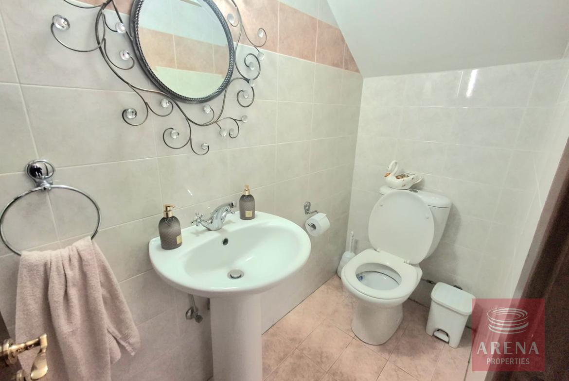 Spacious Layout: 255 sqm internal area on a generous 400 sqm plot. Bedrooms: 5 spacious bedrooms, ideal for large families or those needing extra space. Bathrooms: 4 bathrooms, including 2 ensuite, 1 main bathroom, and 1 guest toilet. Living Spaces: Two expansive living areas, perfect for entertaining or relaxing. Outdoor Areas: 21 sqm covered veranda and 10 sqm covered balconies connected to bedrooms. Year Built: Constructed in 2003 and exceptionally well-maintained, with fresh paintwork completed in December 2024. Quality Finishes: High-quality materials throughout, double-glazed windows, and elegant curtains.