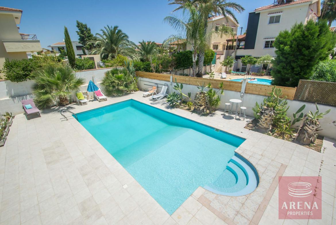 Situated on a quiet residential street this detached home has central heating, utility room, private pool, walking-in-wardrobe, basement 100sq.m., sauna for 6 people and TITLE DEEDS ON THE LAND.