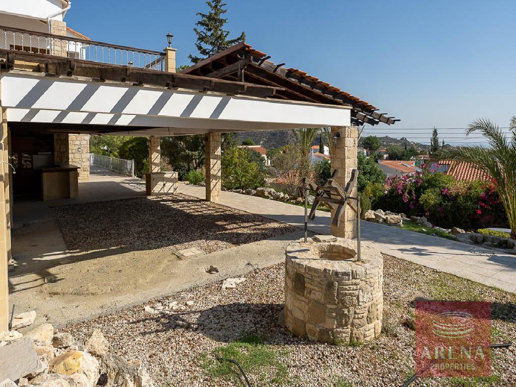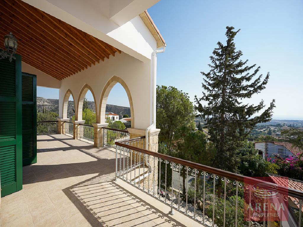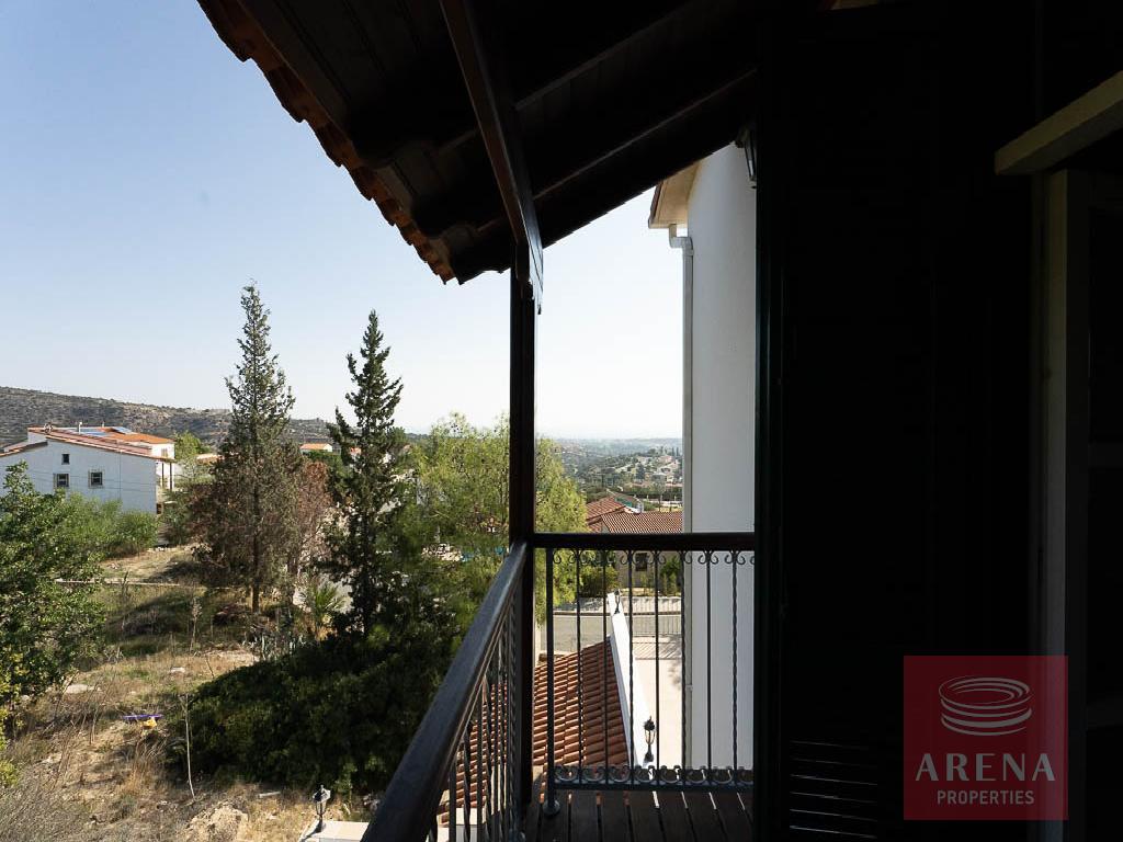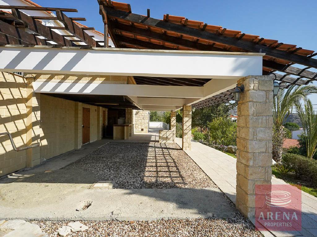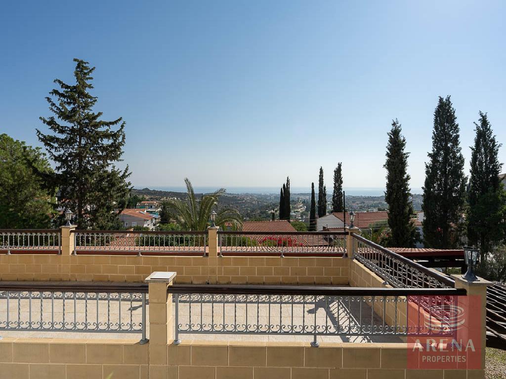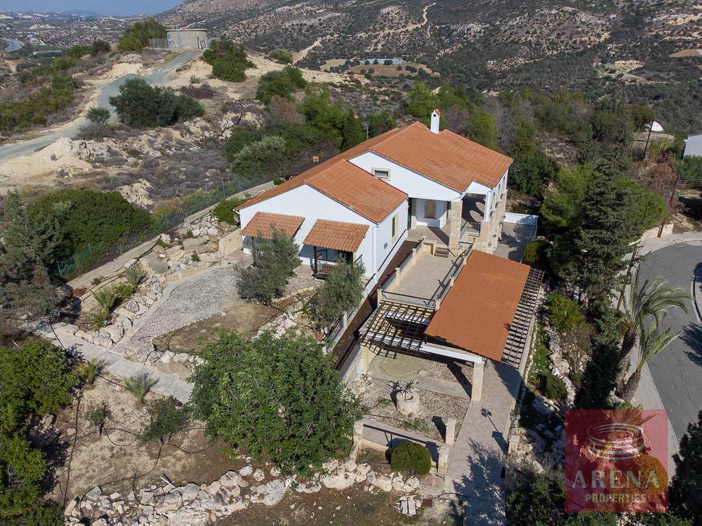 The house was constructed around the year 2007 and it consists of the ground floor of a living /dining room as an open space, a separate kitchen, a guest WC, and two bedrooms [en-suite]. The 1st floor consists of a sitting area with access to a large covered veranda with a panoramic view, an office, kitchenette/utility room, guest WC, three bedrooms, and a bathroom with WC. The basement consists of covered parking spaces and storage. Outside there is a yard with a beautiful garden area, BBQ, and space for a swimming pool that is not constructed. The area of the internal spaces is 410sqm, the covered verandas 50sqm (approx.), and the basement is approximately 50sqm.