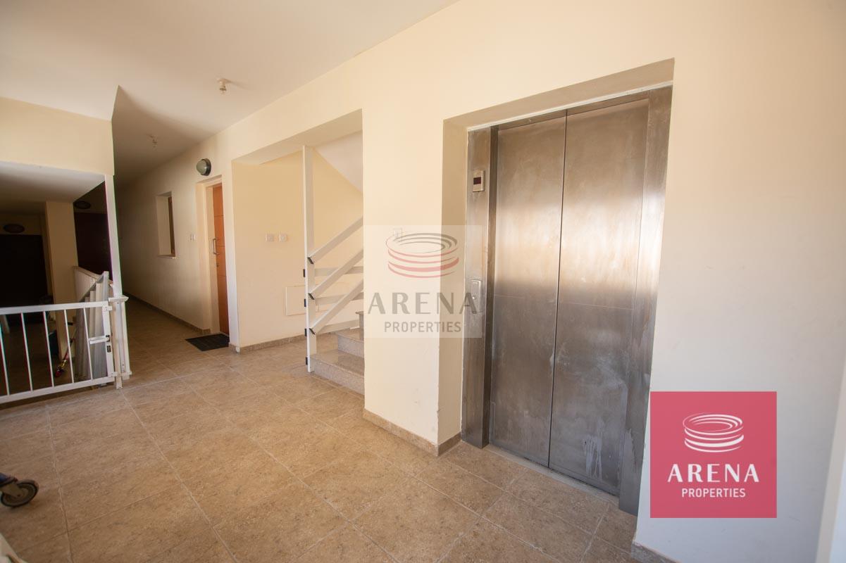 The block has both staircase and elevator access, and the apartment has an allocated, covered parking space.