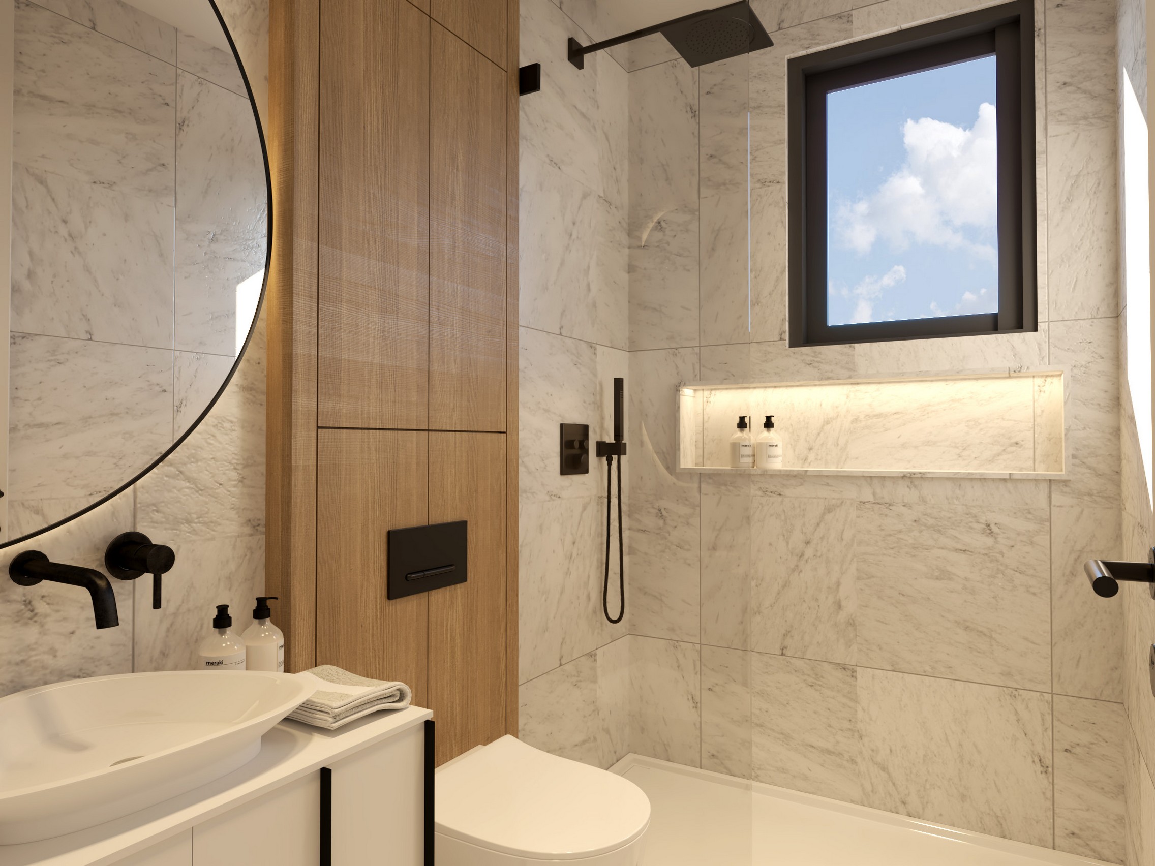 The apartment is crafted to maximize light, space, and functionality, while secure covered parking and landscaped communal spaces enhance everyday convenience. The design has been carefully created to offer a seamless blend of open, airy living and practical functionality.