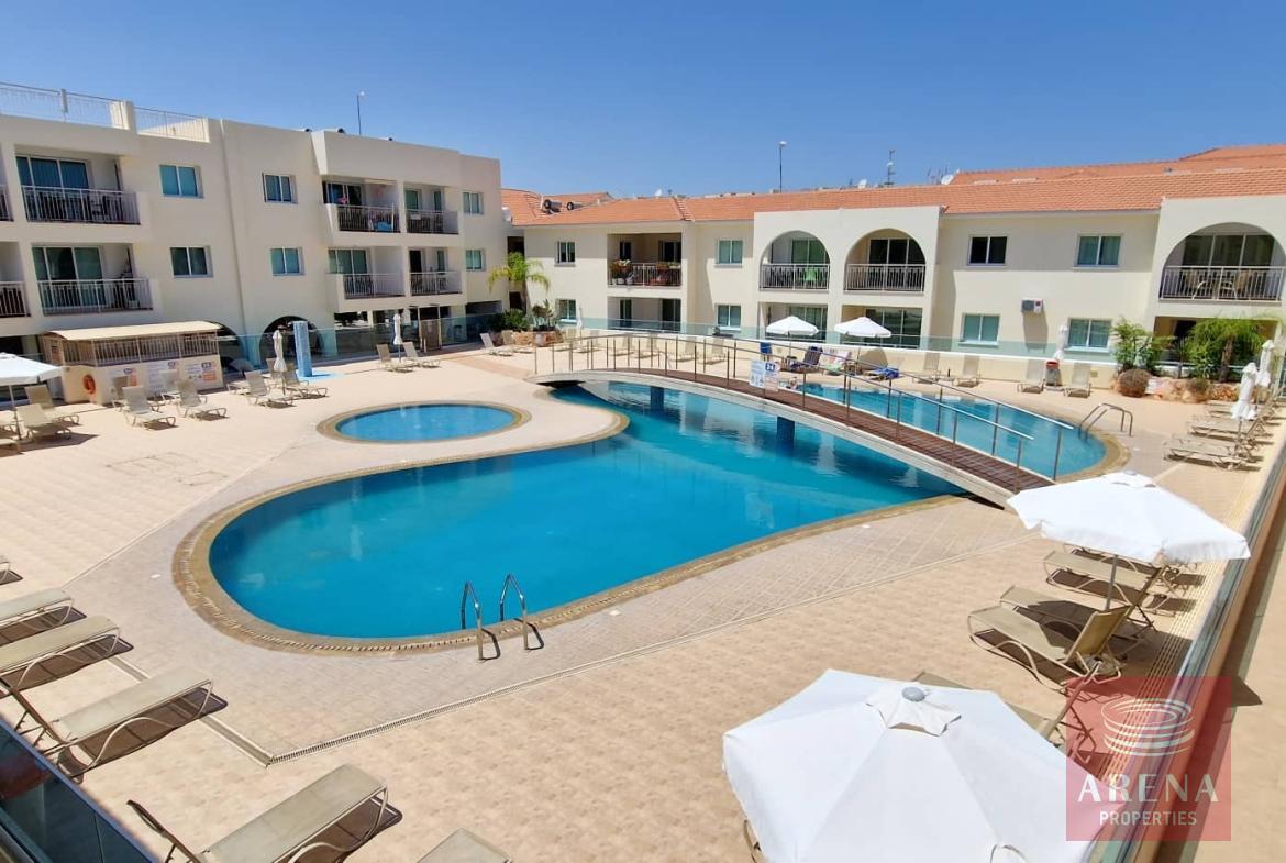 This 2-bedroom, excellent condition apartment is located on a beautiful, very well kept, organized and gated complex, just 650 meters from Kapparis Avenue. The apartment has an outside entrance and consists of an open plan living/dining room with kitchen, leading off to the balcony, followed by two good sized bedrooms and a family bathroom.