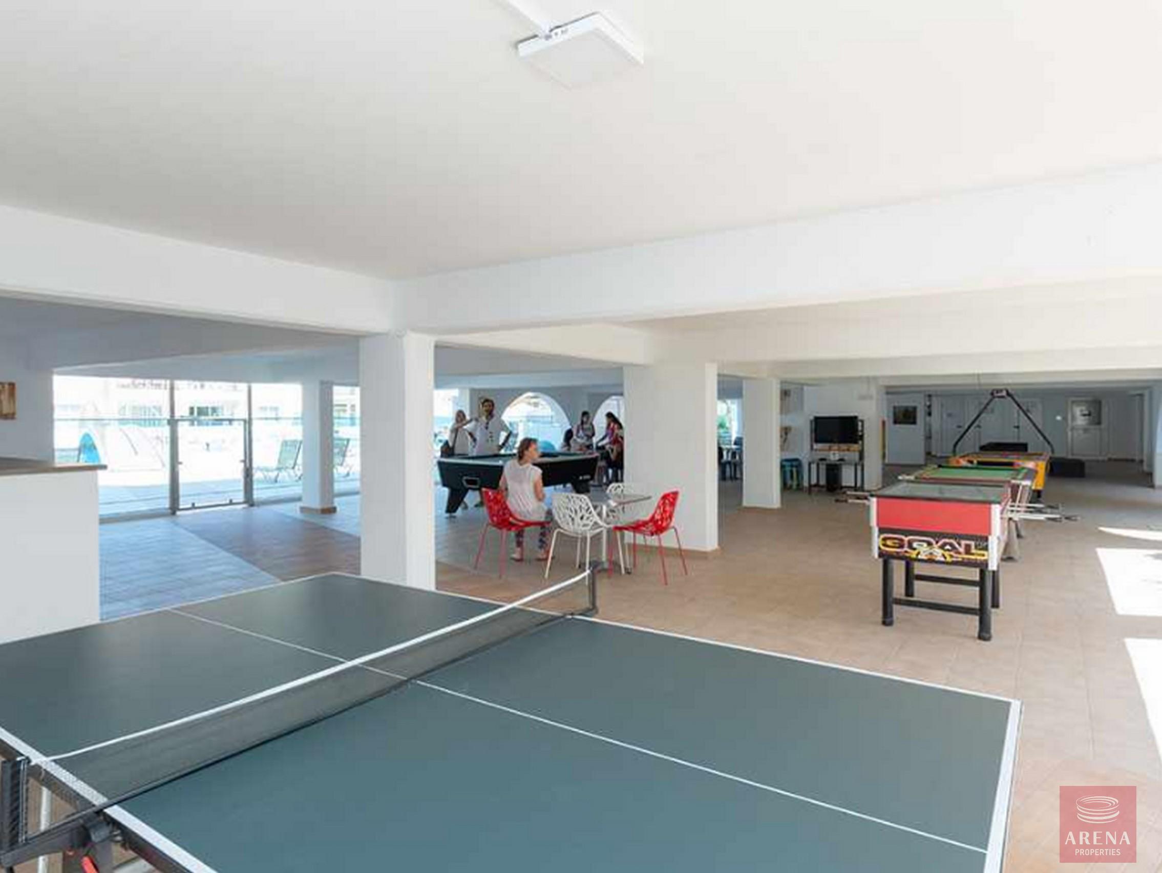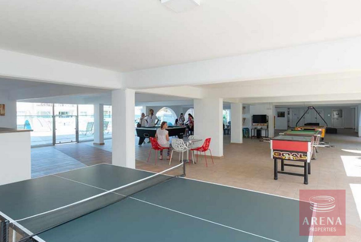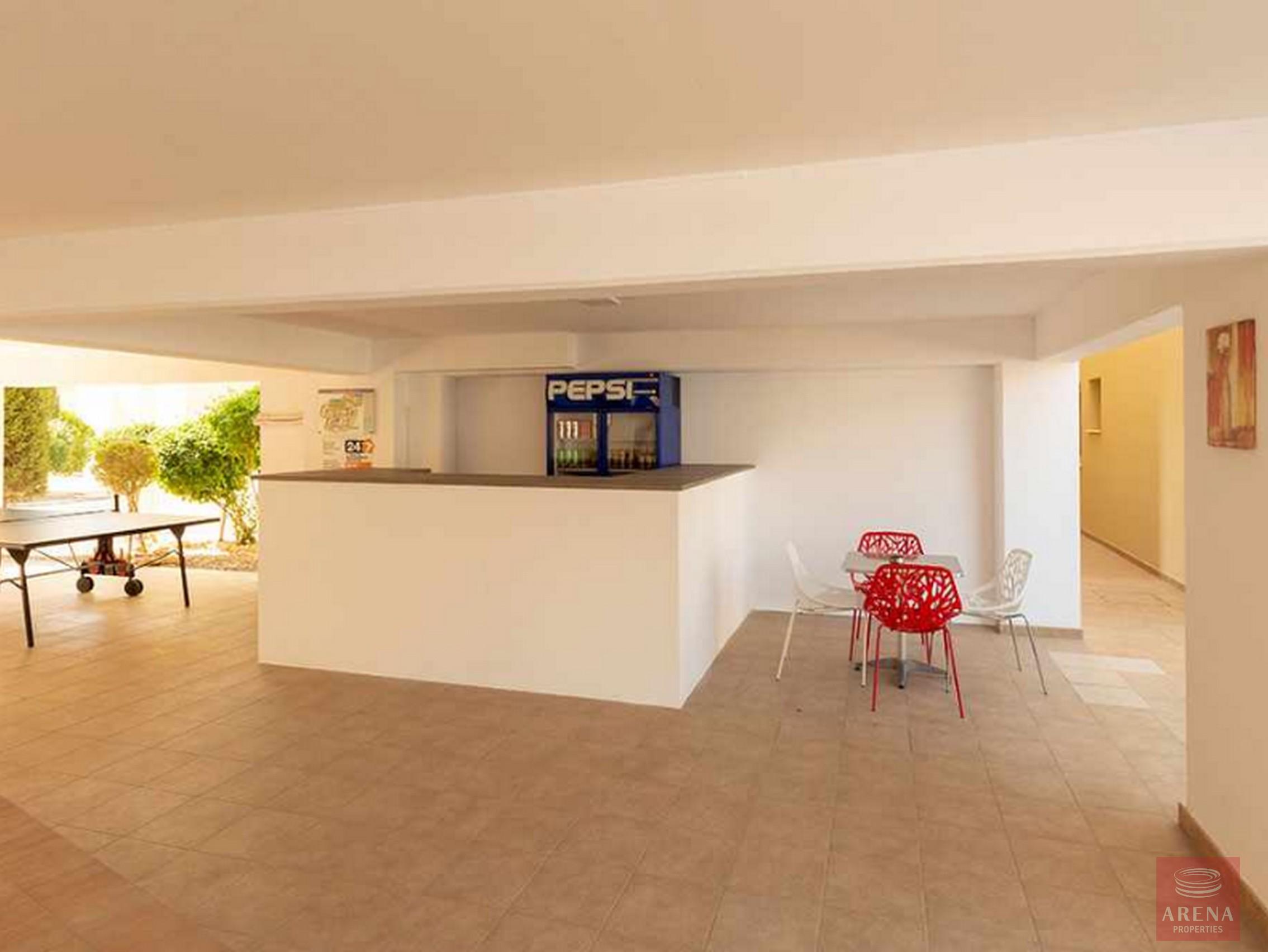 There is a very large communal swimming pool, children’s swimming pool, communal area with games and TV, free wi-fi, playground, tennis court, kiosk that operates in summer time, green areas all around, lots of parking places in and outside the complex.