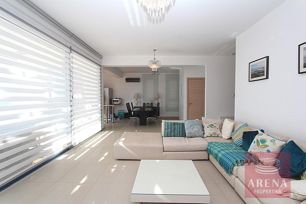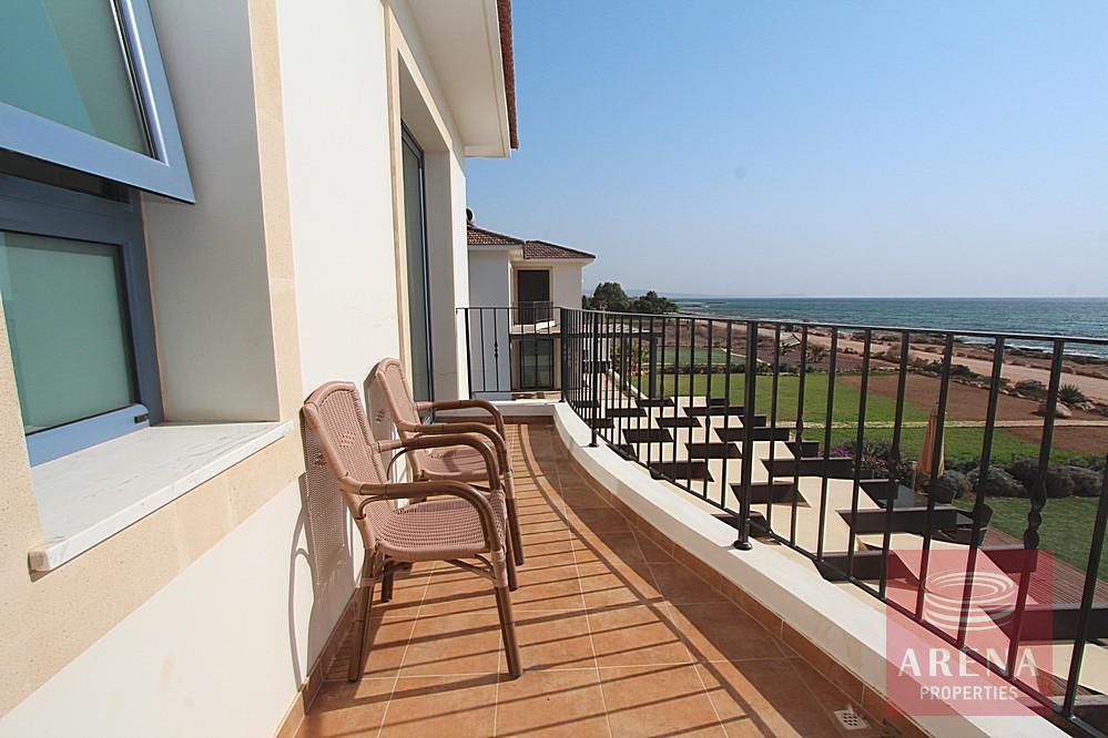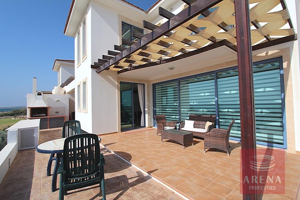 5 bedroom villa with TITLE DEEDS in Ayia Thekla. STUNNING SEA FRONT 5 bedroom villa in Exclusive Ayia Thekla Location. Set on a large front-line plot this 5 bedroom beautiful villa offers amazing views of the crystal clear Mediterranean waters.rnrnArranged over three floors this wonderful property is cleverly designed to capture those amazing views from the ground floor living, kitchen and dining areas as well as the master suite and 2nd bedroom on the 1st floor. Finished and furnished to a very high standard with high quality fixtures including fireplace, air conditioning and state of the art kitchen appliances. The basement floor houses a further self contained suite together with an additional bedroom/games room and laundry room.rnrnSet on a small complex close to the local supermarket and Wednesday market this house is walking distance to the nearest Sandy beach but also boasts a private swimming pool terrace complete with stone BBQ. Viewing is highly recommended for this excellent property.
