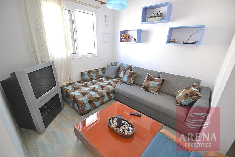 2 Bedroom townhouse is available for sale in Cape Greco just 300 meters away from the sea. Located only 300ms away from the beautiful Mimosa Beach in the Cape Greco area of Protaras, this 2 bedroom townhouse offers the perfect location for a holiday home by the sea. Set back in a quiet residential area, with allocated parking, this well maintained property offers many extra including full air-condition, fly screens, and a relaxing patio area with pergola. The accommodation comprises of an open plan lounge and kitchen with a guest WC on the ground floor, with 2 bedrooms and a family bathroom on the 1st floor. The furniture is negotiable. Excellent investment property for holiday rentals.