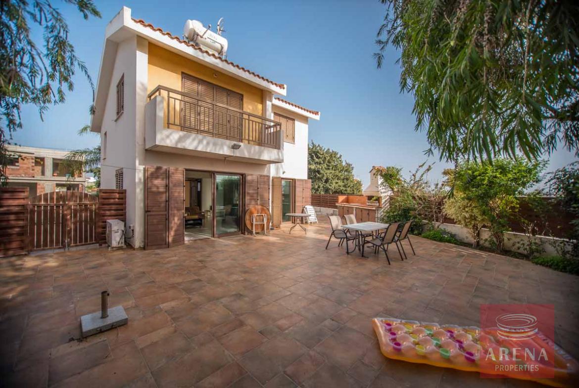 Three bedroom villa with title deed, walking distance to the beach at Ayia Triada or Malama Beach at Kapparis. This villa is set back on a plot of 350m2 with a covered area of 128m2