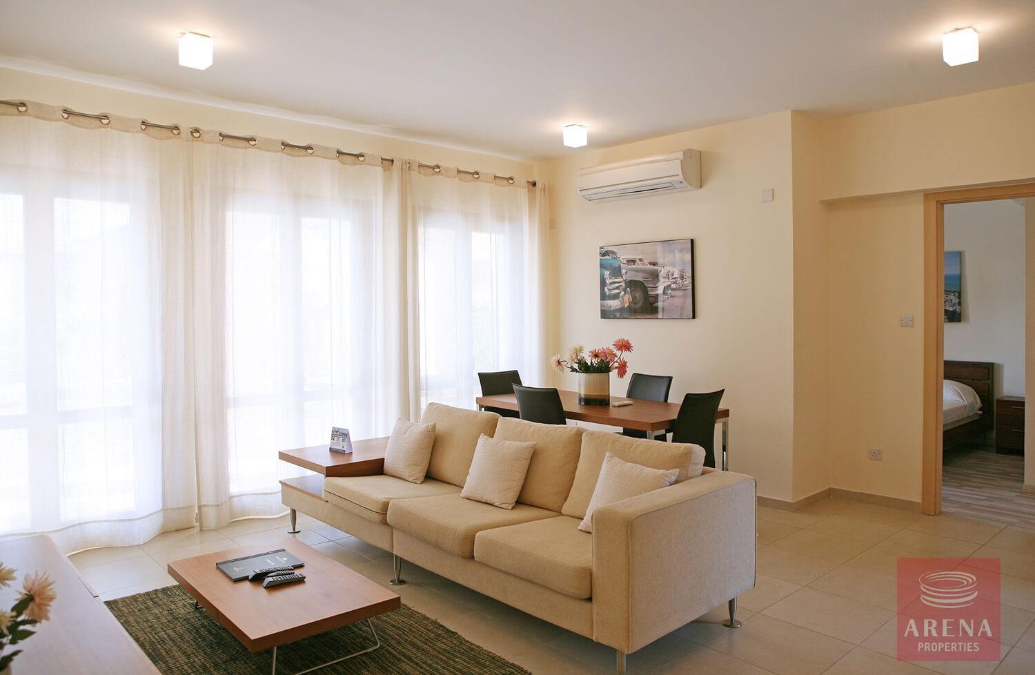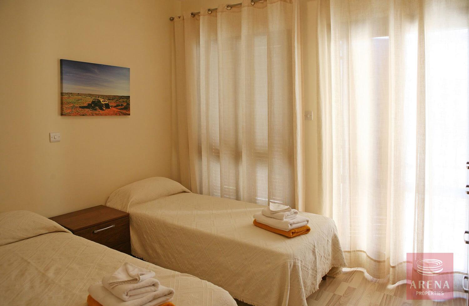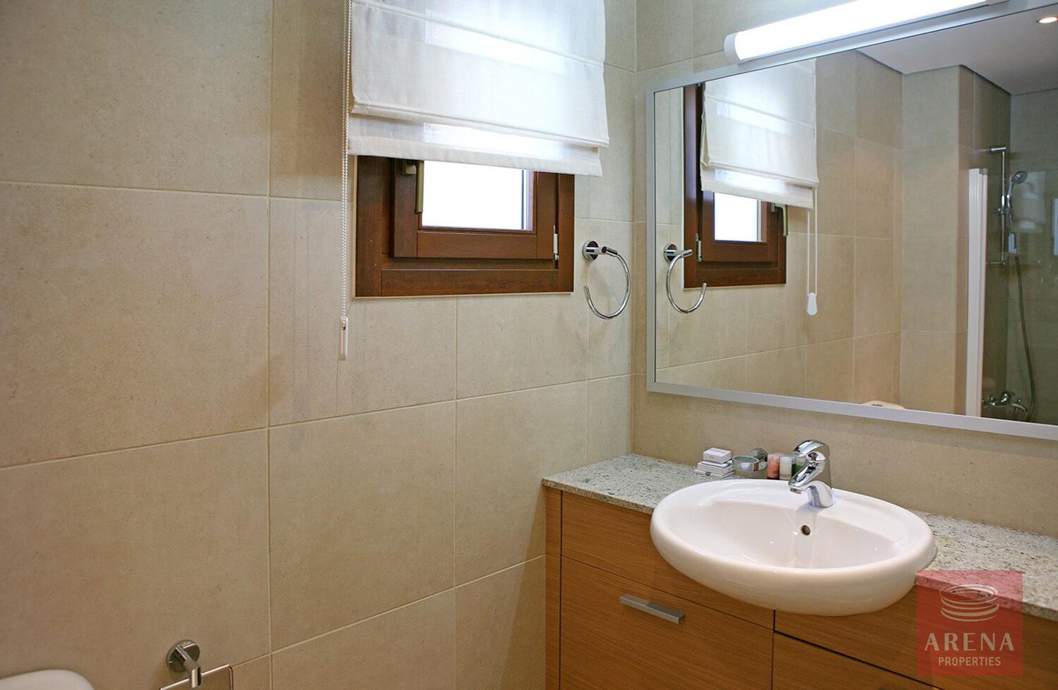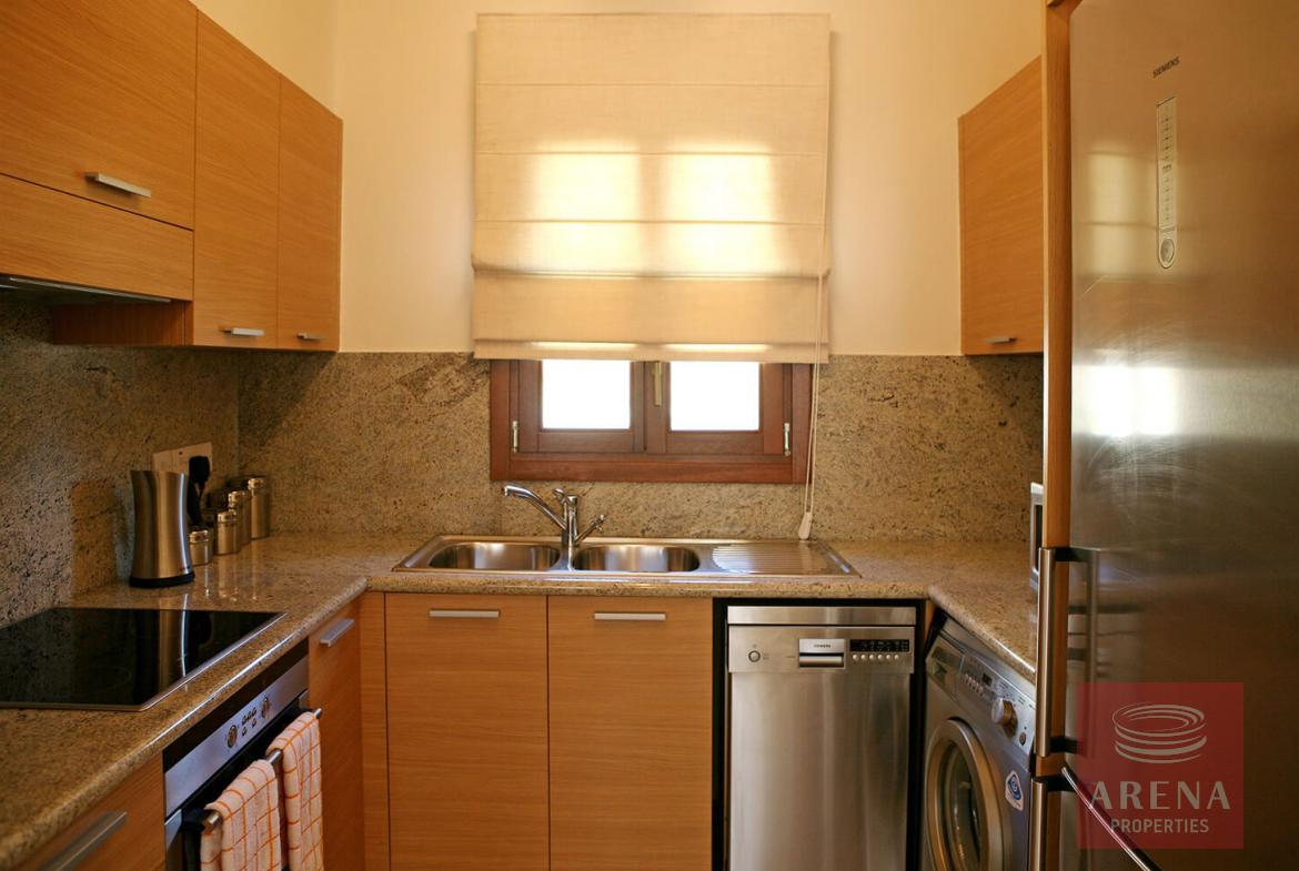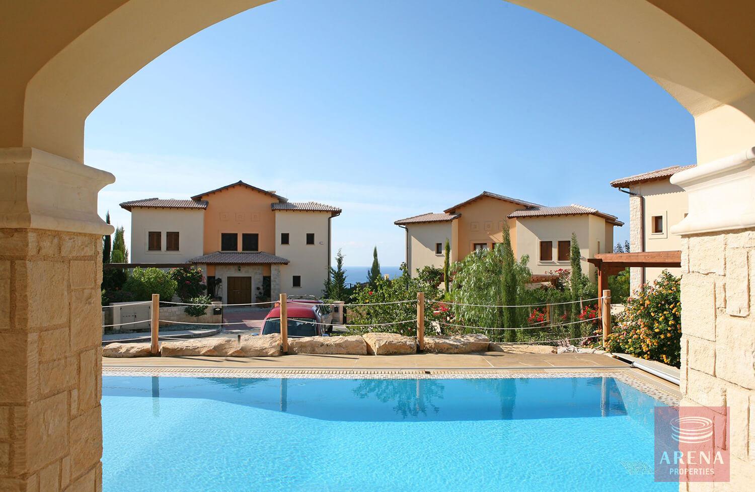 This fantastic 2 bedroom apartment with private pool is located in the beautifully landscaped Theseus Village, within close walking distance to the second communal swimming pool and not too far from the free form main communal swimming pool. The property is on the ground floor and is tastefully decorated in neutral tones with contrasting flashes of colour on the soft furnishings and has modern fixtures and fittings throughout. Walking out from the dining and lounge area through the French Wooden doors onto the terrace, one can enjoy a large private swimming pool.