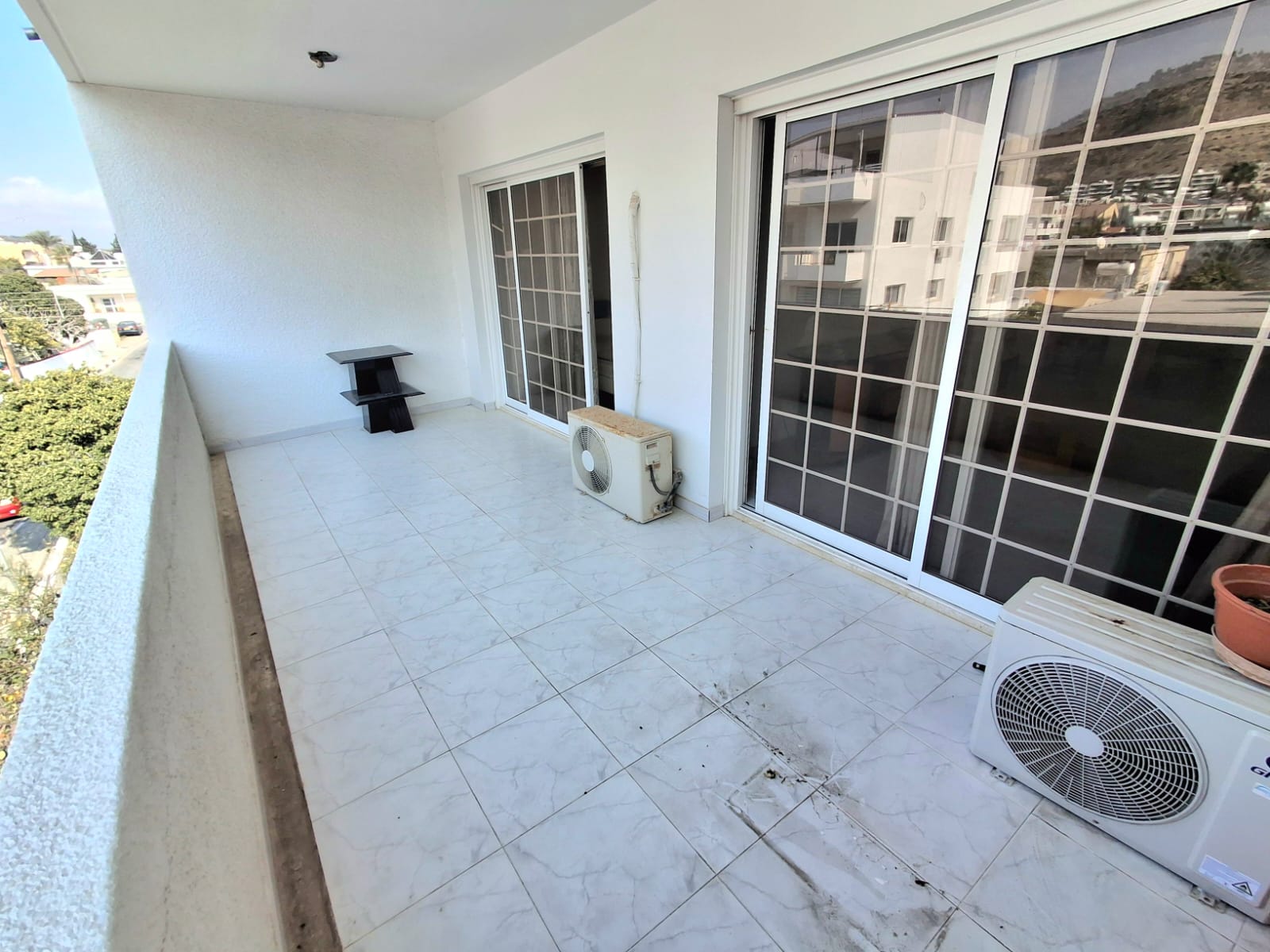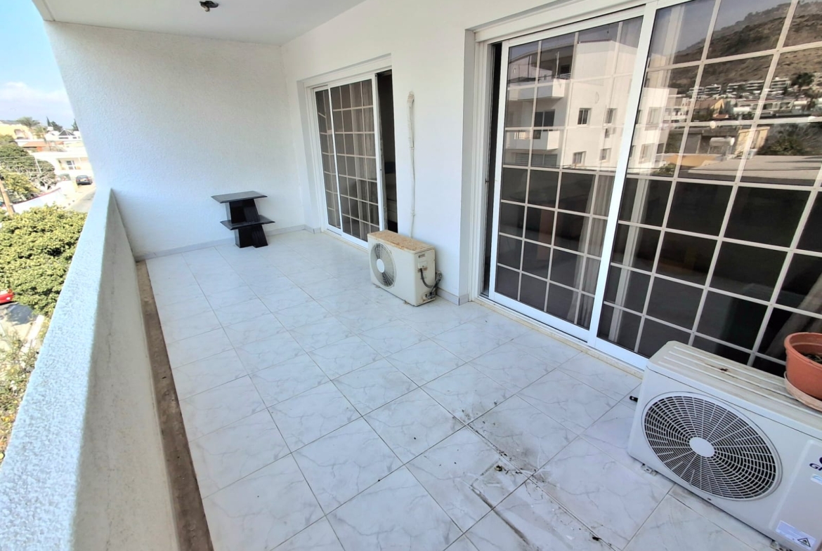 2 beds 1 bathroom 78 sqm 20 sqm covered balcony 2000 year of built 2nd floor Small building with four apartments in total Separate kitchen Solar panels Freshly painted Next to all amenities 600 euro/month 250 euro/year common expenses