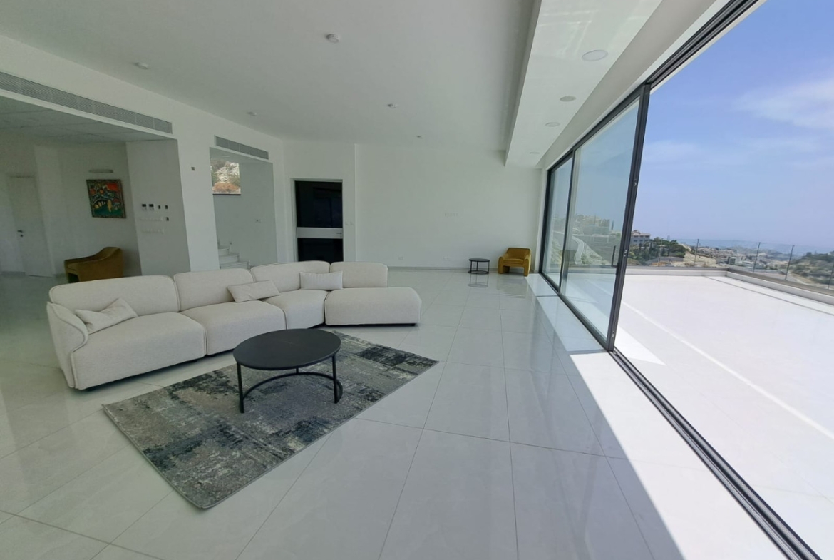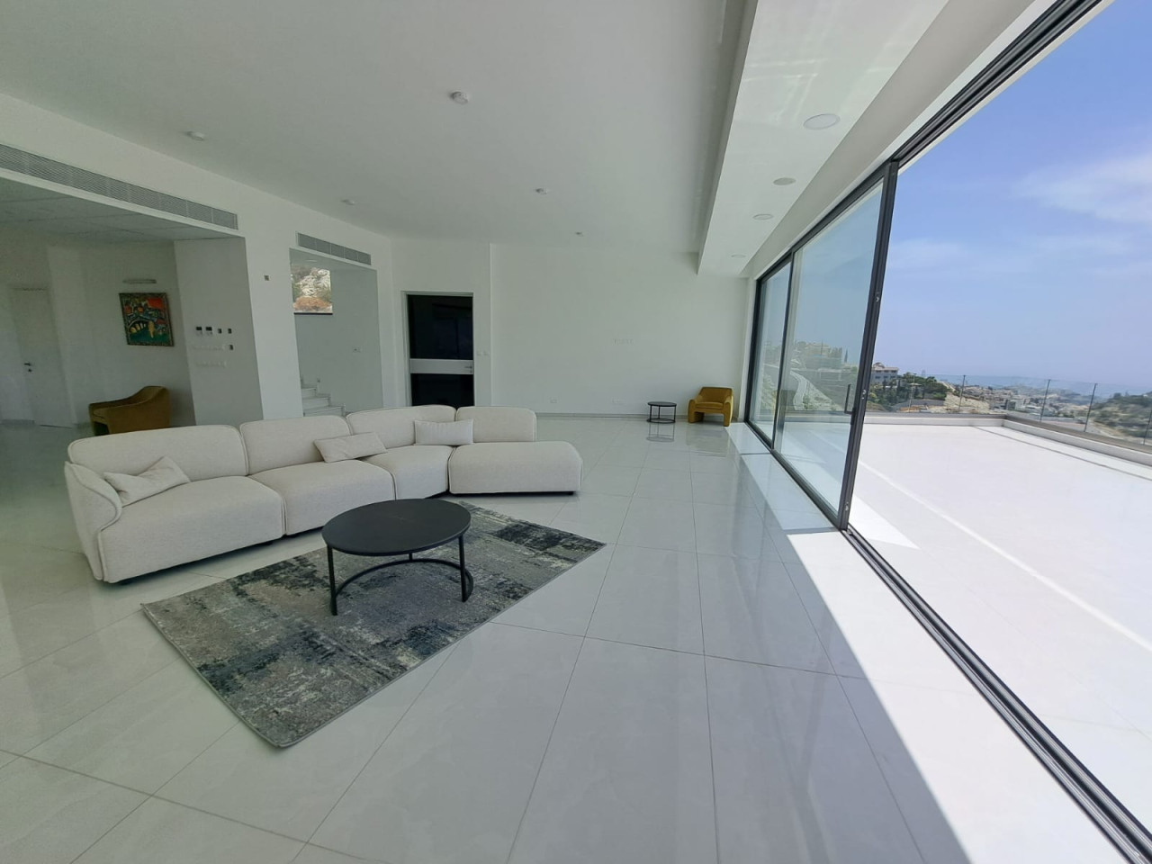 This stunning contemporary 8 bedroom villa in most sought after Agios Tychonas area of Limassol cover the total area of 737 sq.m. It is situated in quite cul-de-sac street on the top of the hill, boasting panoramic sea views.