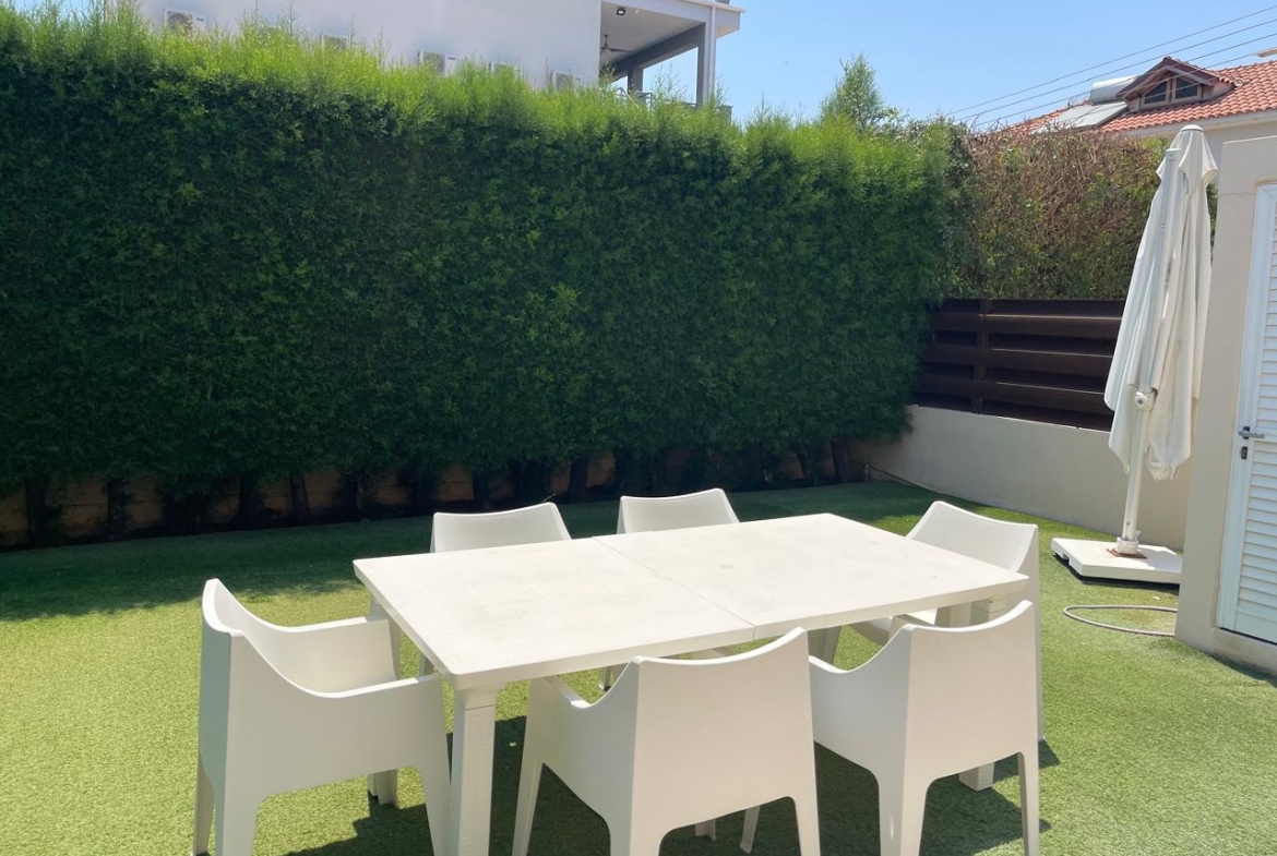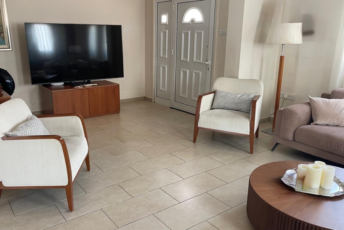 This beautiful three-bedroom, three-bathroom house, with an internal area of 190 square metres and a plot size of 300 square metres, is available for rent at €1,800 per month. Located in a peaceful neighborhood in Larnaca, this home is designed for comfort and modern living. The interior features a bright, open-plan living and dining area that receives plenty of natural light. A separate, fully-equipped kitchen provides a functional space for everyday use. The house comes fully furnished with a mix of contemporary and classic pieces. For year-round comfort, the property includes air conditioning and central heating. The three bedrooms are well-sized and offer a serene retreat, while the three bathrooms are clean and equipped with modern fixtures. The private backyard is an ideal space for relaxation and entertaining, with a manicured hedge for privacy, a patio with outdoor seating, and a dining area. This home is perfect for families or individuals seeking a blend of comfort, style, and practicality.