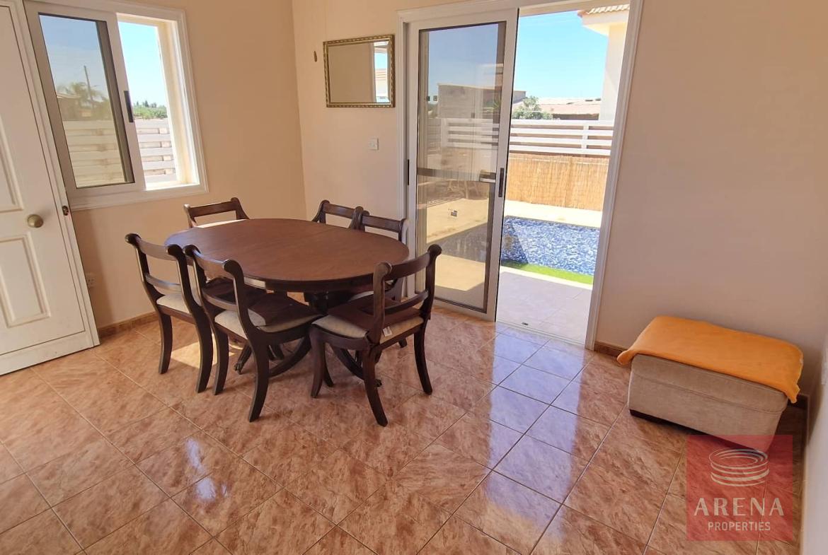It is situated in a new project of houses and bungalows on the outskirts of the village next to the countryside and yet just 2 minutes’ drive from the center of the village, where one can find anything from supermarkets, pharmacies, cafes, and various taverns.