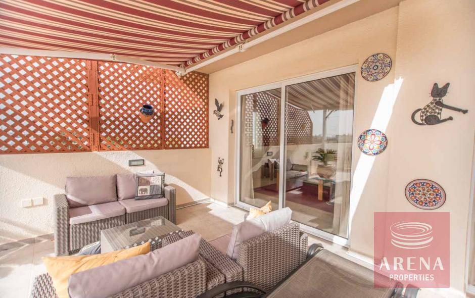 A well-kept two-bedroom apartment on the second floor. The property consists of a spacious kitchen/dining and living area with access to a huge veranda 70m2 with BBQ area and another small balcony overlooking the communal swimming pool.